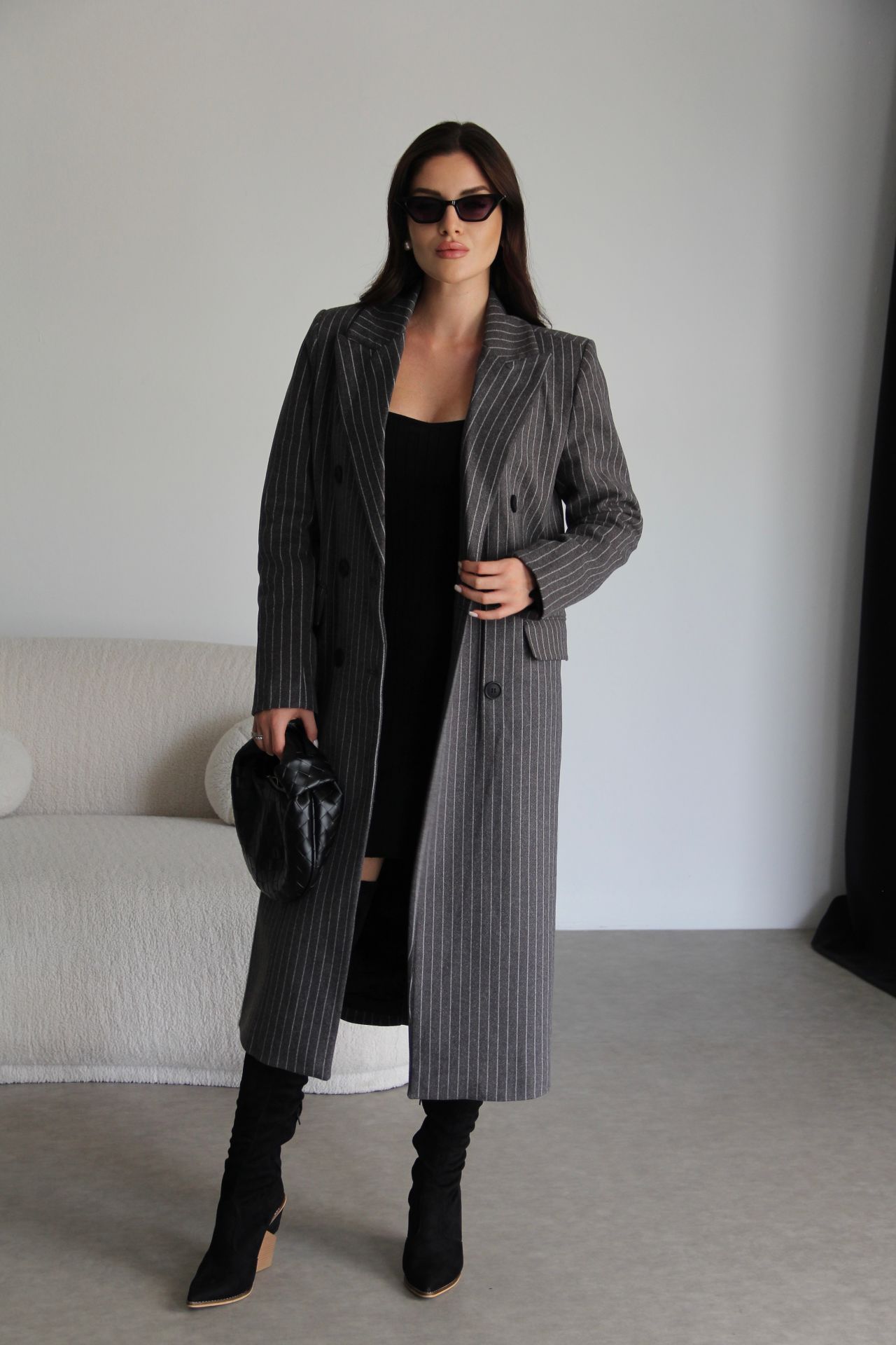 Julidress, Yeni Sezon Antrasit Çizgili Kapaklı Cepli Düğmeli Astarlı Premium Uzun Kaban Kumaş Türü :%78 Yün %22 Pamuk - Kaban Boyu: 116 cm - Rahat ve yumuşak yapısı ile son bahar, kış mevsimlerinde kullanabileceğiniz oldukça şık yüksek kalite kaban- Mankenin üzerindeki ürün “S” bedendir. Model Boy: 170cm -Işık farklılığından dolayı renkler değişiklik gösterebilir