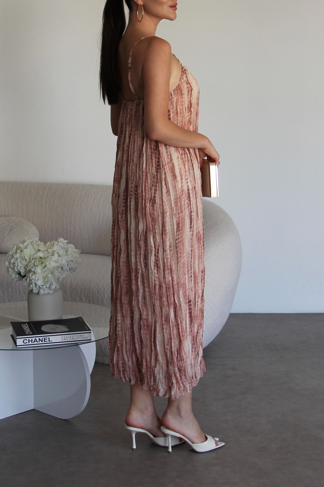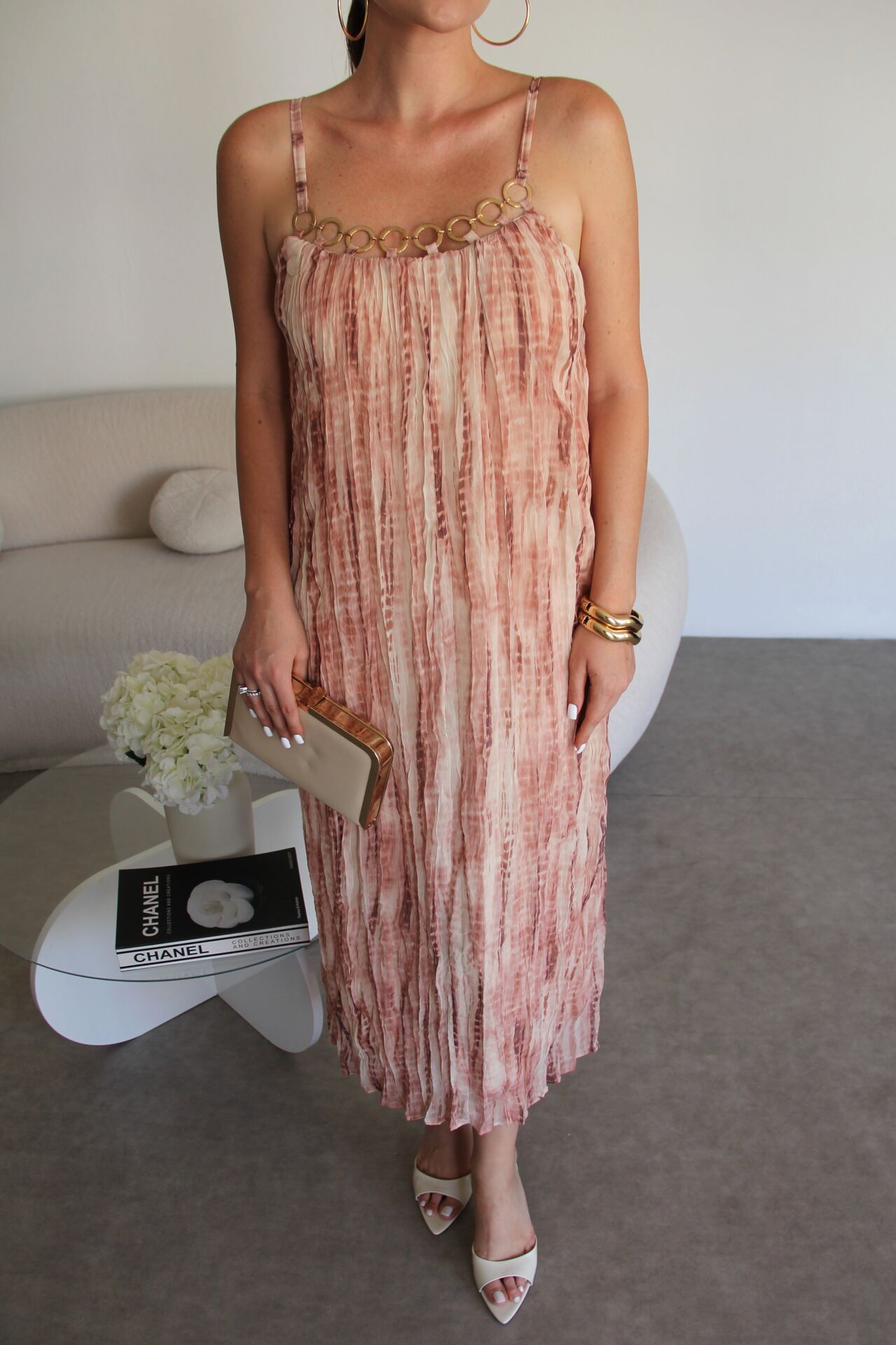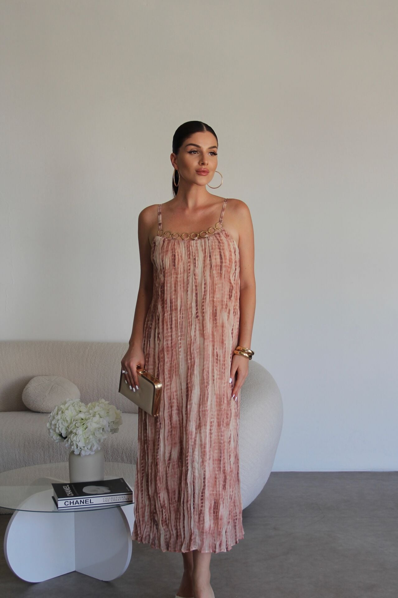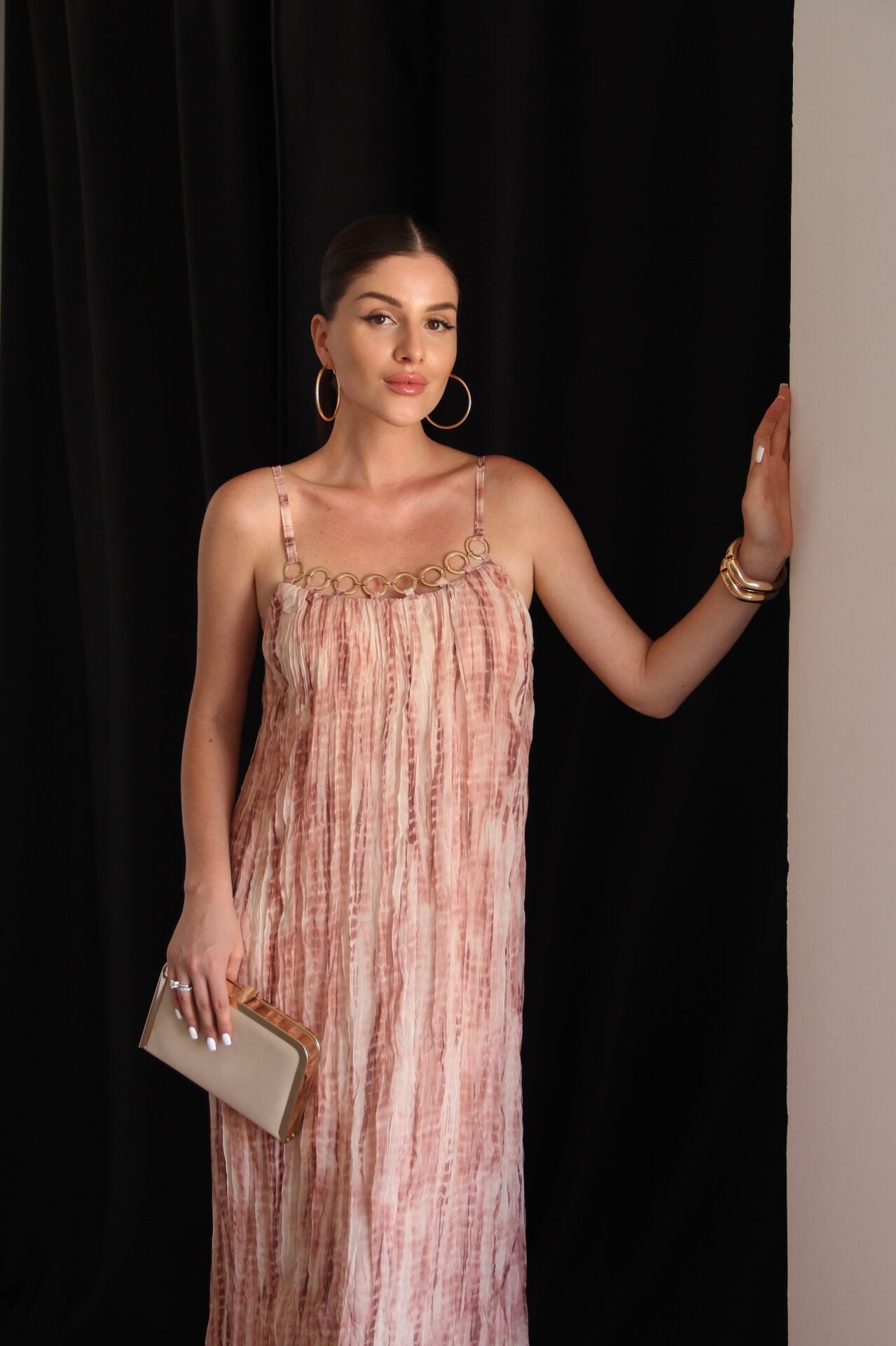 Askılı Gold Metal Halka Detaylı Astarlı Şifon Elbise
