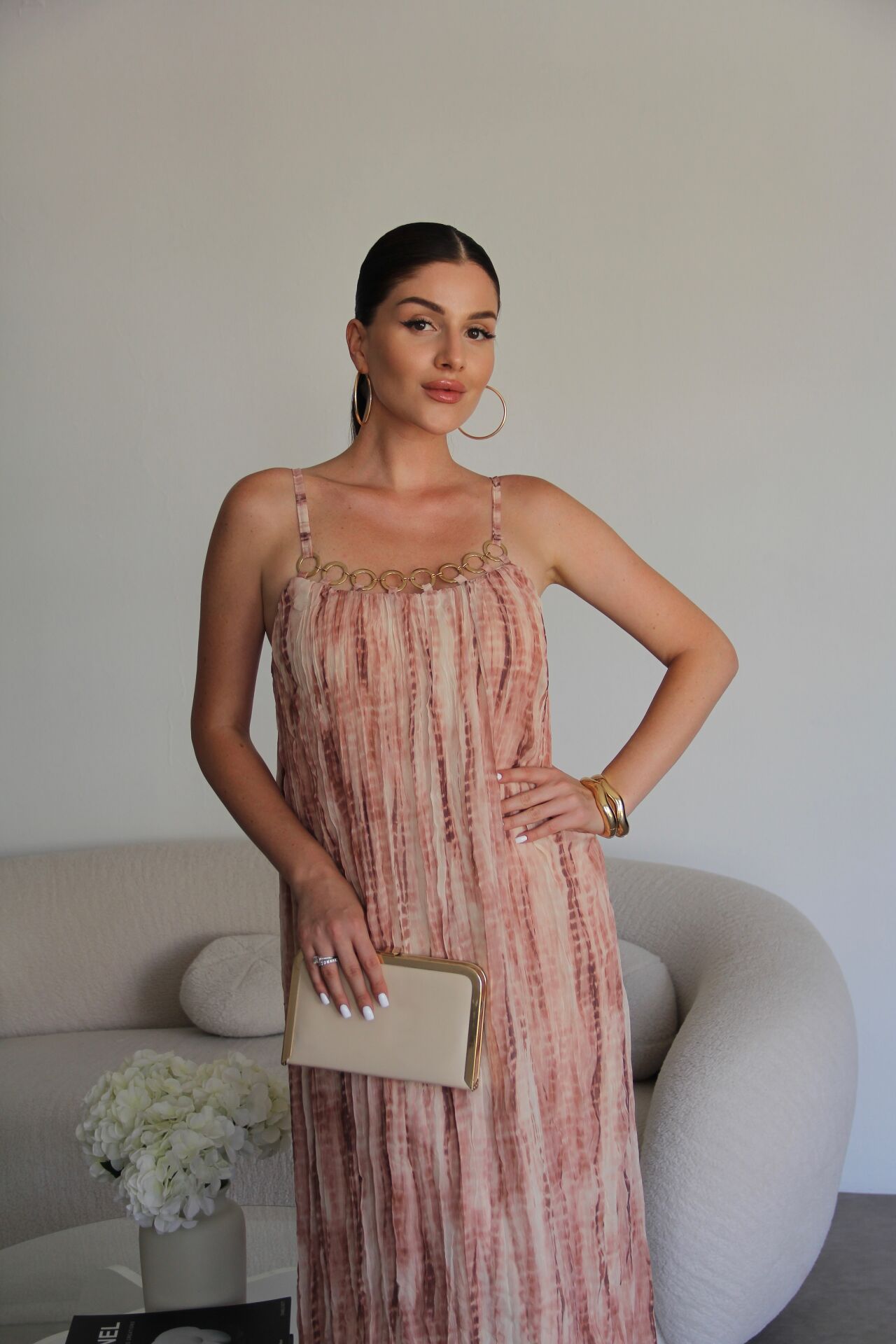 Askılı Gold Metal Halka Detaylı Astarlı Şifon Elbise. Zarif tasarımıyla dikkat çeken askılı gold metal halka detayları, şıklığınızı ön plana çıkarır. Uzun boy kesimi ile hem gündüz hem de gece kullanımına uygun, çok yönlü bir stil sunar.