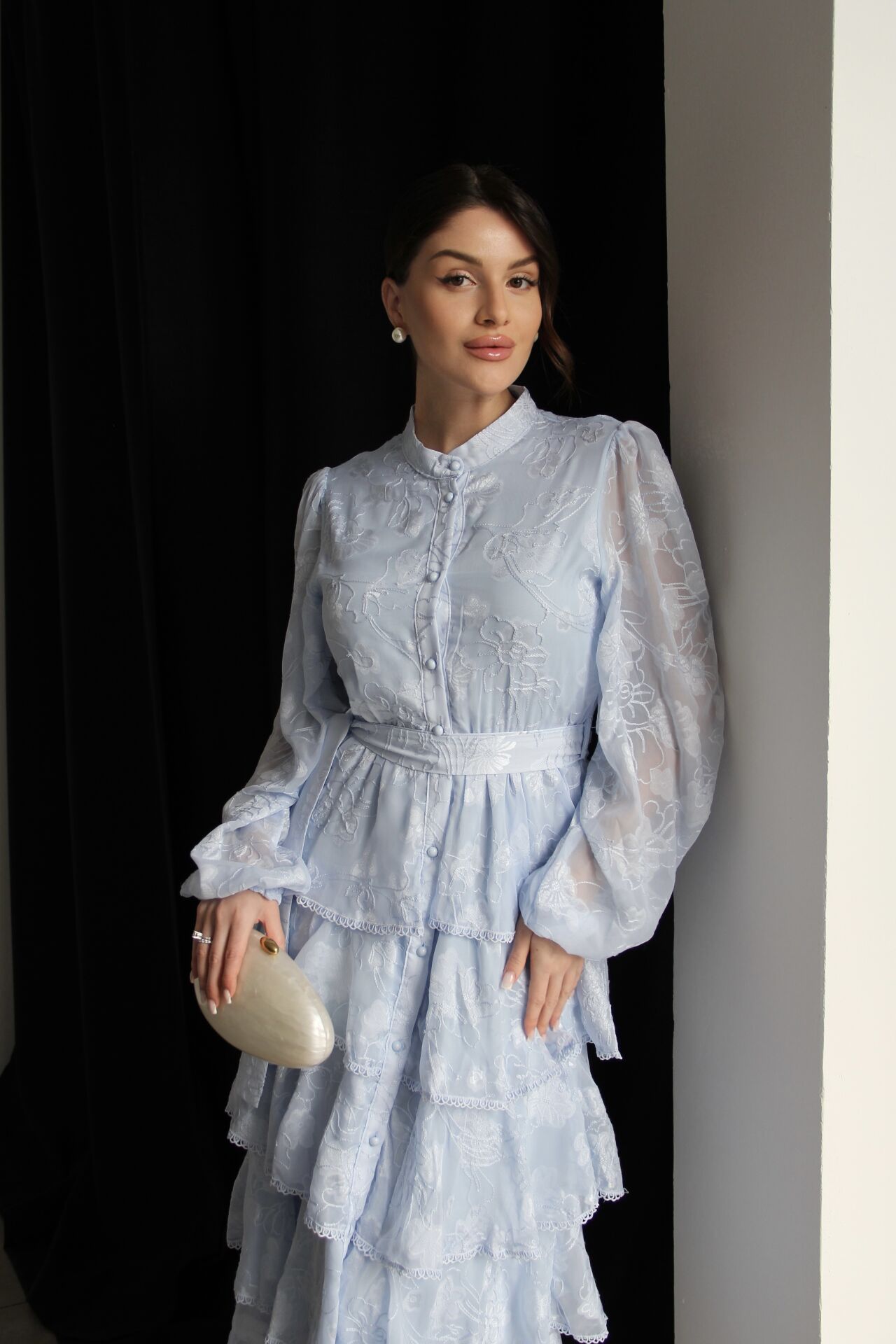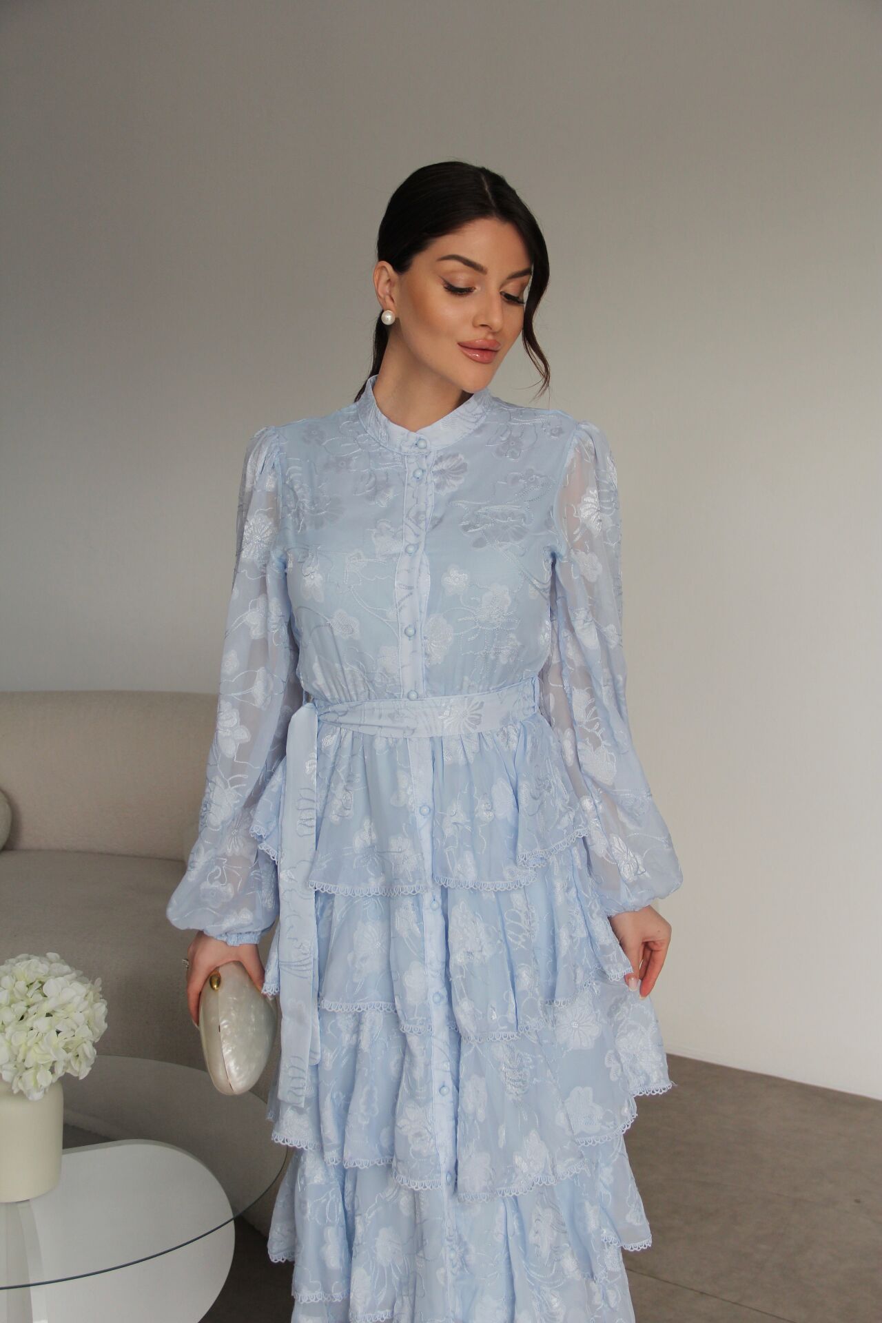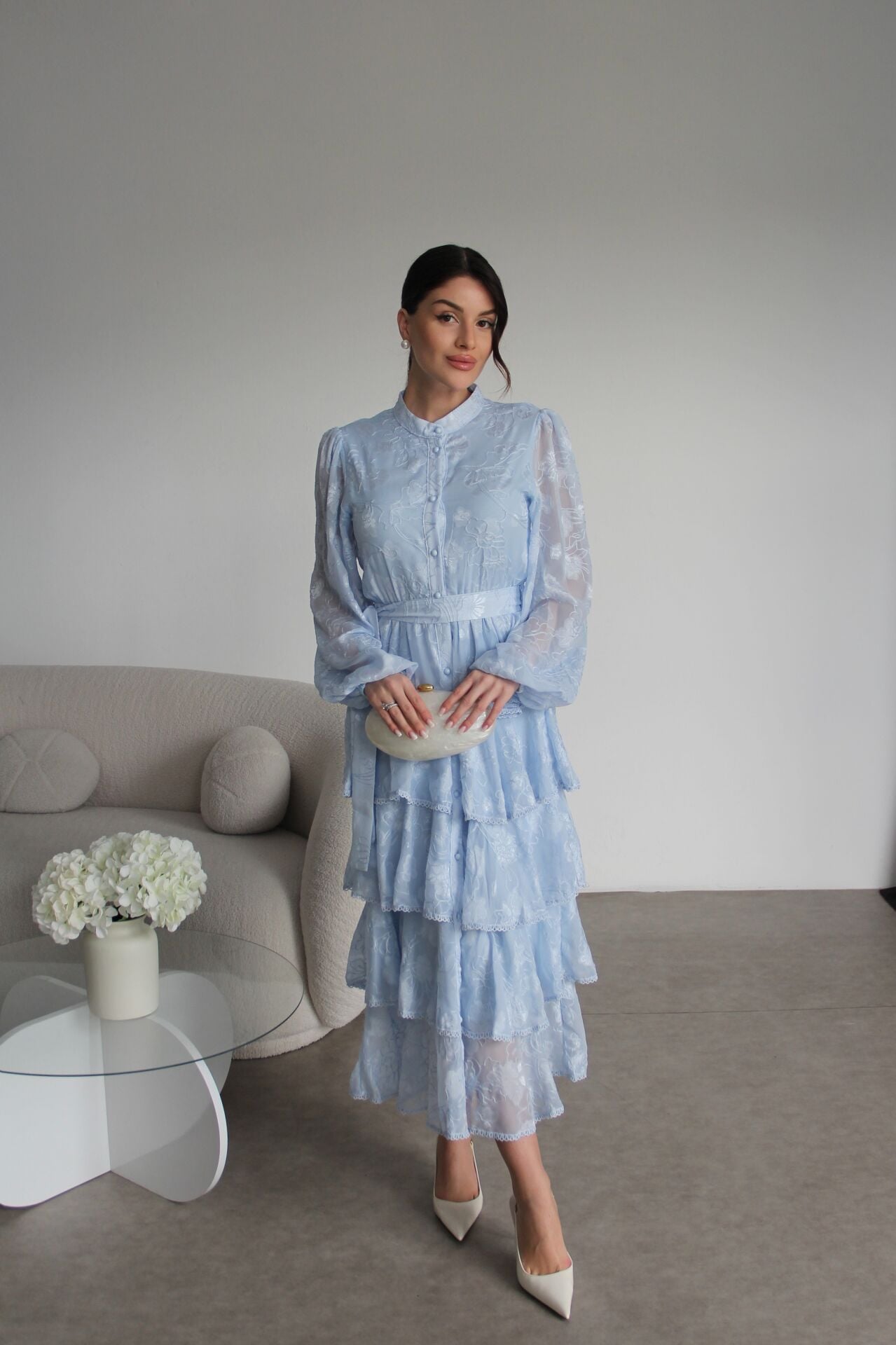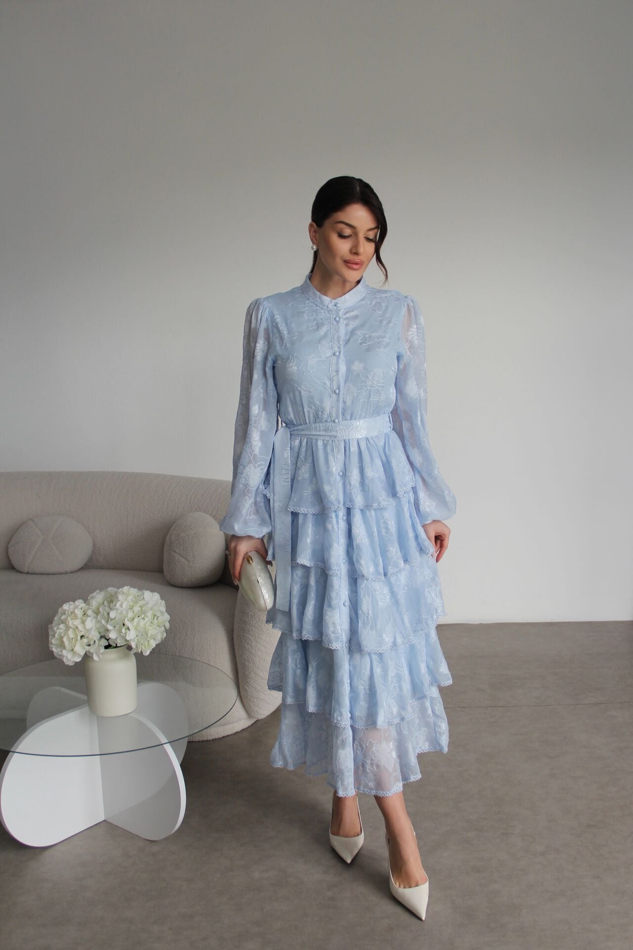 - - Boydan Düğmeli Nakışlı Kuşaklı Beli Lastik Detaylı Kat Kat Premium Tasarım Elbise.; Elbise Boyu:130cm(Ortalama), Kumaş Bilgisi:%100 Polyester.; Boydan düğmeli tasarımı ile şık ve modern bir görünüm sunar.; - Nakış detayları, elbiseye zarif bir dokunuş katarken, kuşaklı yapısıyla belinizi vurgular.; - Beli lastik detaylı olması sayesinde rahat bir kullanım sağlar ve farklı vücut tiplerine uyum gösterir.; - İnce kumaşı ile hafif ve konforlu bir deneyim sunar, mevsim geçişlerinde idealdir.; - Hakim yaka tasarımı, sofistike bir hava katar ve günlük kullanım için uygundur.; - Tüm sezonlar için uygun olan bu elbise, gardırobunuzun vazgeçilmez parçası olmaya adaydır.;Zarif hakim yaka tasarımı ile dikkat çeken bu elbise, her ortamda şıklığınızı ön plana çıkarır.; - Çiçekli deseniyle canlı ve enerjik bir görünüm sunan mavi renk seçeneği, gardırobunuzun vazgeçilmezi olacak.; - Midi boyu ile hem rahatlık hem de zarafeti bir arada sunan bu elbise, günlük kullanım için idealdir.; - İç göstermeyen ince dokuma kumaşı sayesinde rahat bir kullanım sağlar ve şık bir siluet oluşturur.; - Slim kalıbı ile vücut hatlarınıza mükemmel uyum sağlarken, A-line kesimi feminen bir duruş kazandırır.; - Full düğme kapama detayı ve kuşaklı tasarımı ile kolayca kişiselleştirilebilir bir stil sunar.; - Kolsuz ve uzun kol boyu kombinasyonu, mevsim geçişlerinde bile rahatlıkla tercih edilebilmesini sağlar.; - Astarlı yapısı ile konforlu bir kullanım sunarken, şifon dokuma tipi hafifliğiyle hareket özgürlüğü sağlar.; - Sürdürülebilirlik detayı ile çevre dostu bir tercih yapmanızı sağlar.; - Kuru temizleme talimatına uygun olması, uzun süreli kullanım için idealdir.; - Yetişkin kadınlar için tasarlanmış bu elbise, cool & comfort persona ile günlük şıklığınızı tamamlar.
