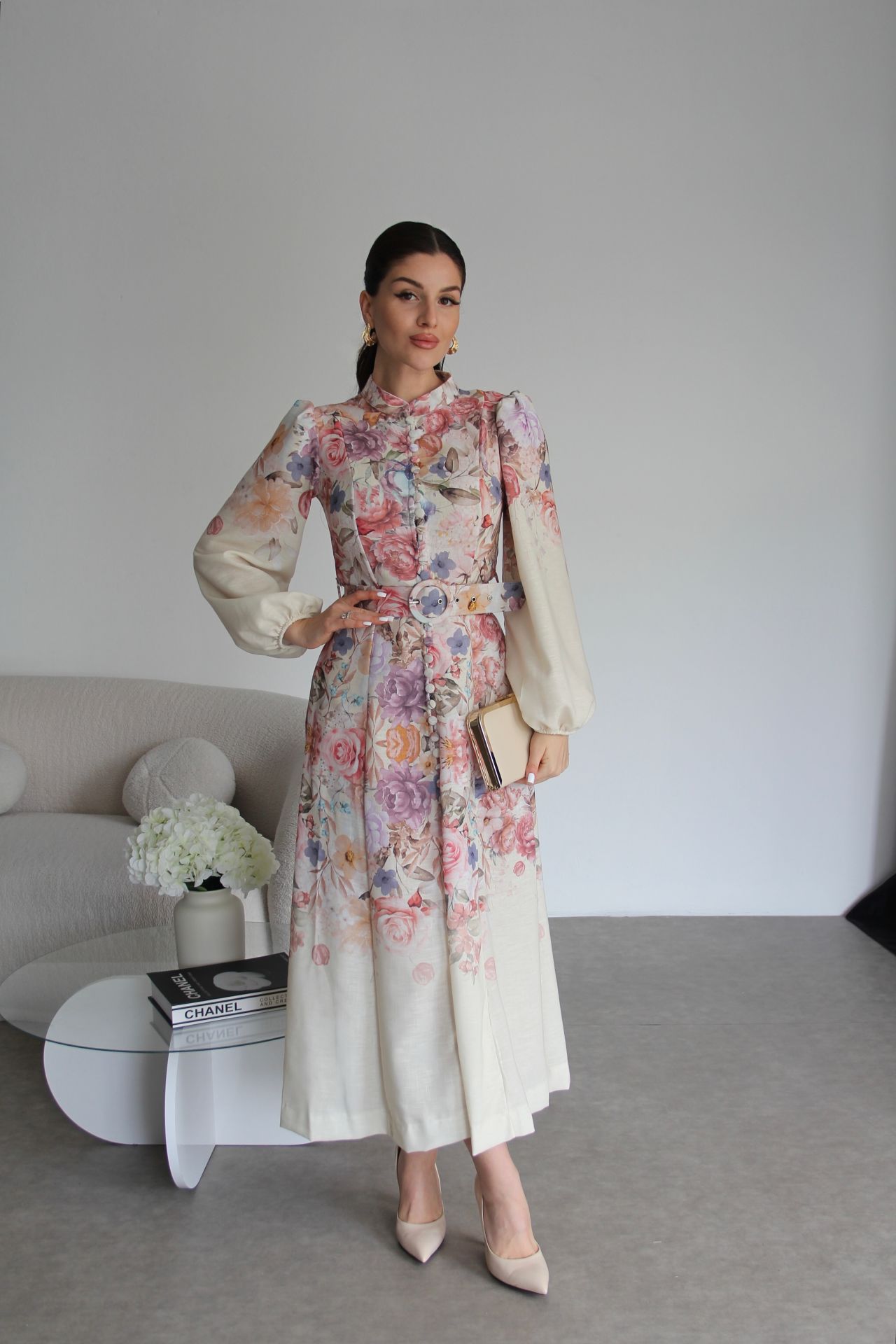 Rahat ve yumuşak yapısı ilk bahar, ve yaz aylarında kullanabileceğiniz oldukça şık yüksek kalite elbise ; Mankenin üzerindeki ürün “S” bedendir.