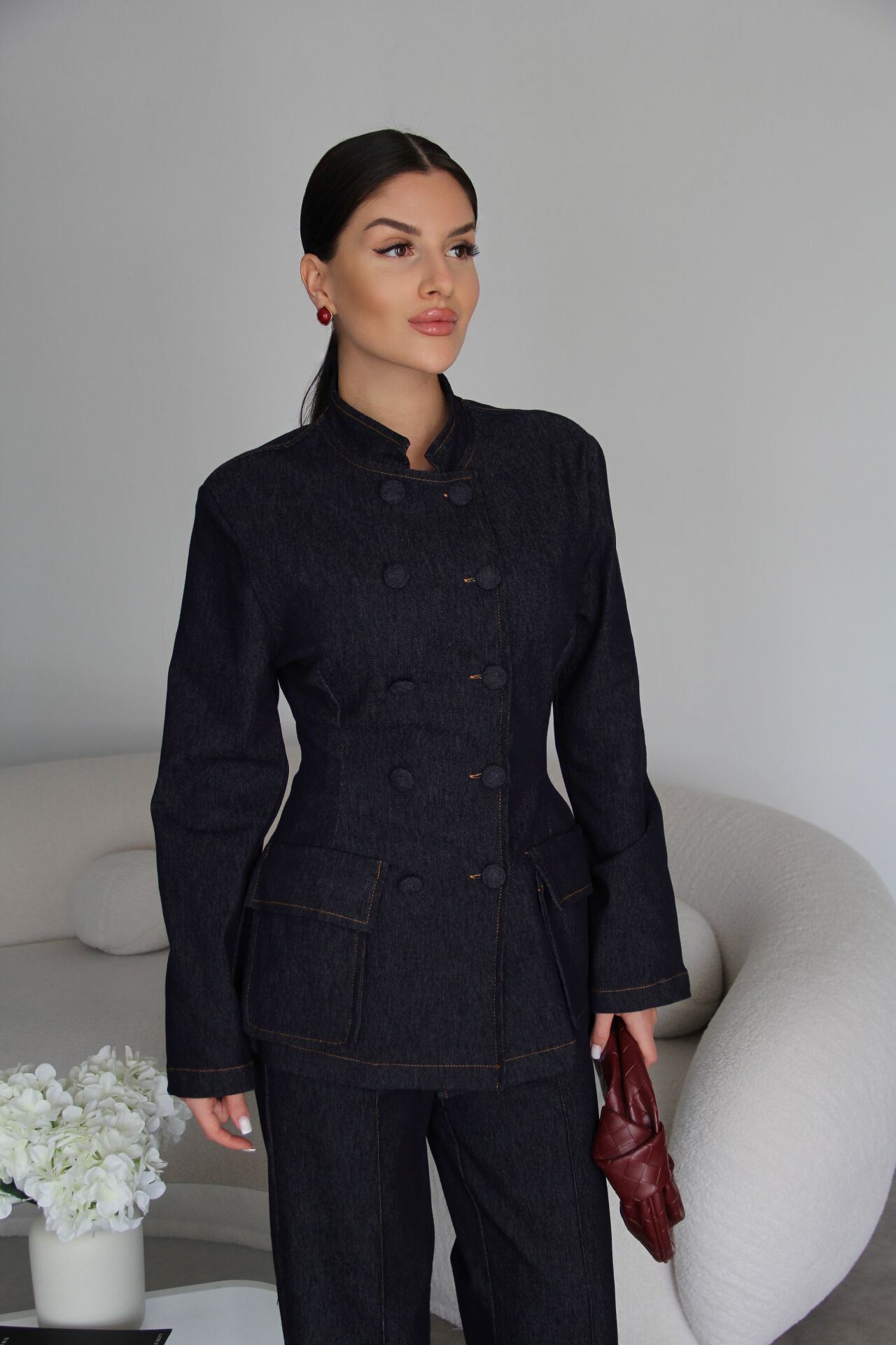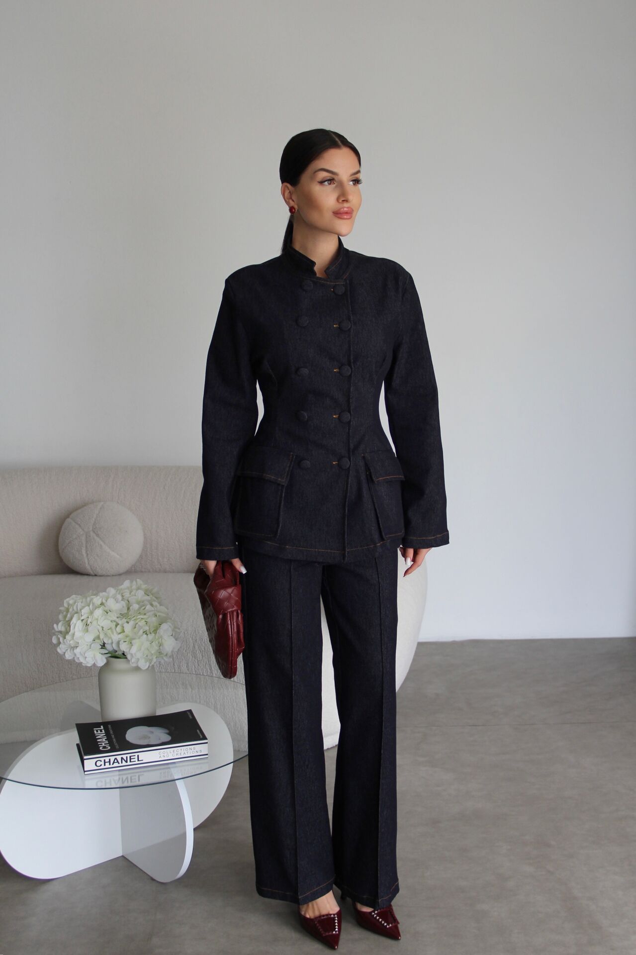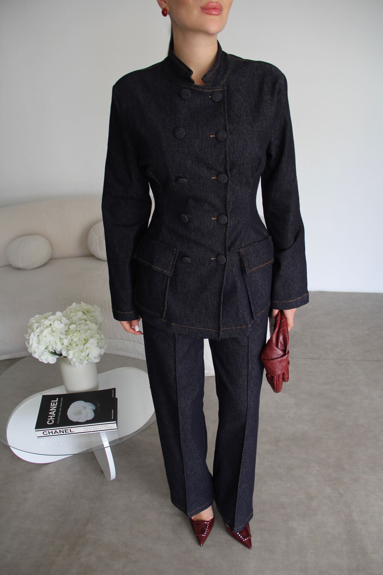 Beli Lastikli Pantolon Alt Üst Premium Denim Takım. Ceket boyu:72cm.; Pantolon boyu: 108 cm Paça boyu:28cm. Kumaş İçeriği:%100 Pamuk. Rahat kesimiyle günlük kullanım için ideal olan bu ceket, şıklığı ve konforu bir arada sunar.; - İspanyol paça pantolon ile tamamlanan bu takım, modern ve zarif bir görünüm sağlar.; - Pamuklu materyali sayesinde gün boyu rahatlık hissi verirken, nefes alabilir yapısıyla terlemeyi minimize eder.Hakim yaka tasarımı ile klasik ve sofistike bir stil oluştururken, kuşak detayı belinizi vurgular. Kol tipi ve boyu hakkında daha spesifik bilgi verilmemiştir; ancak ceketin uzun kollu olduğu varsayılabilir.