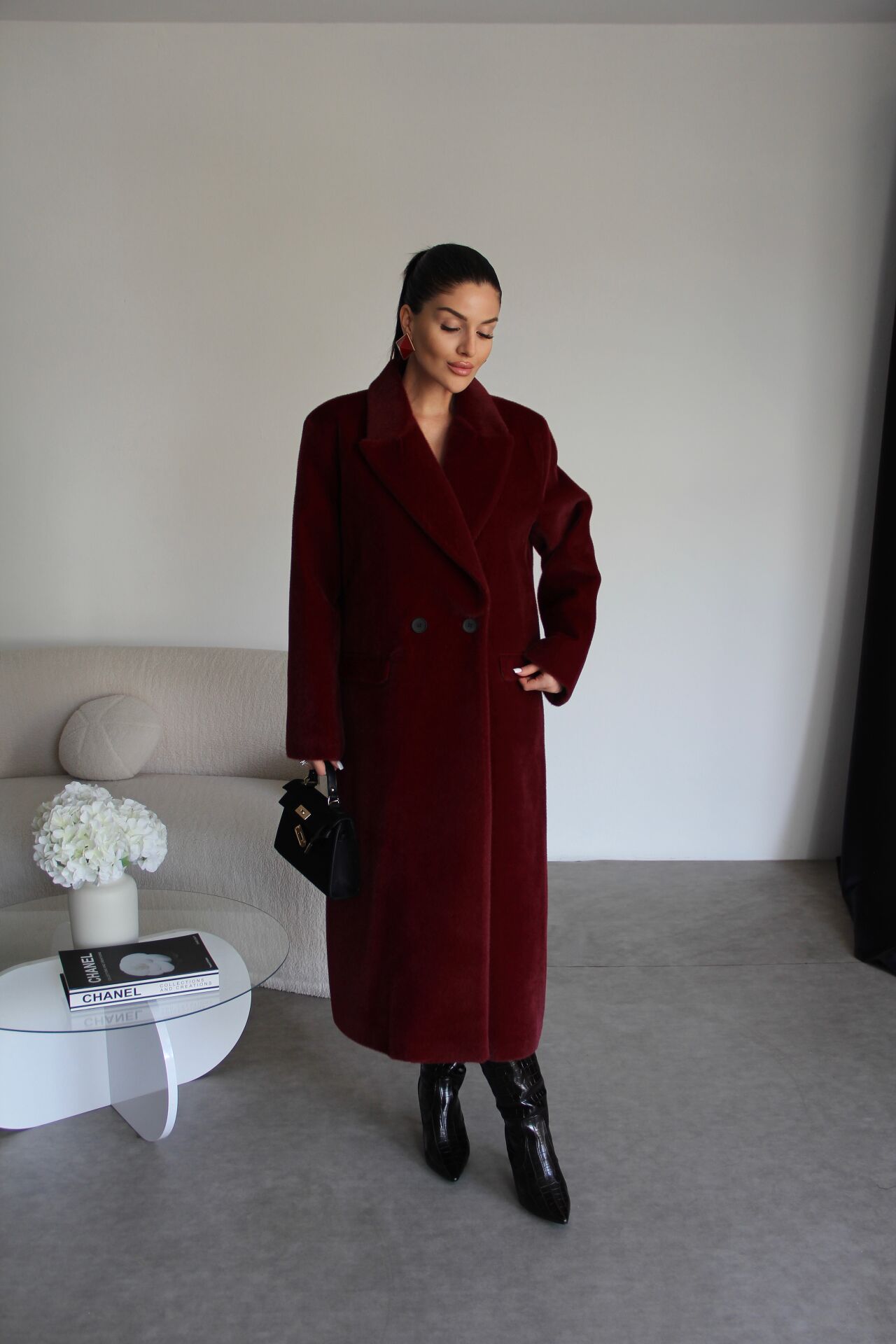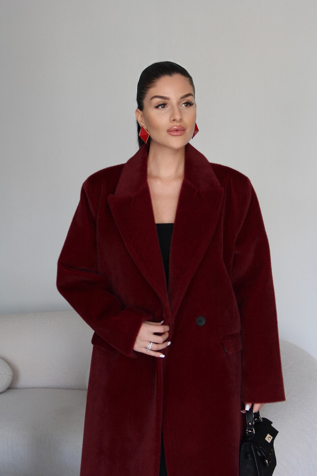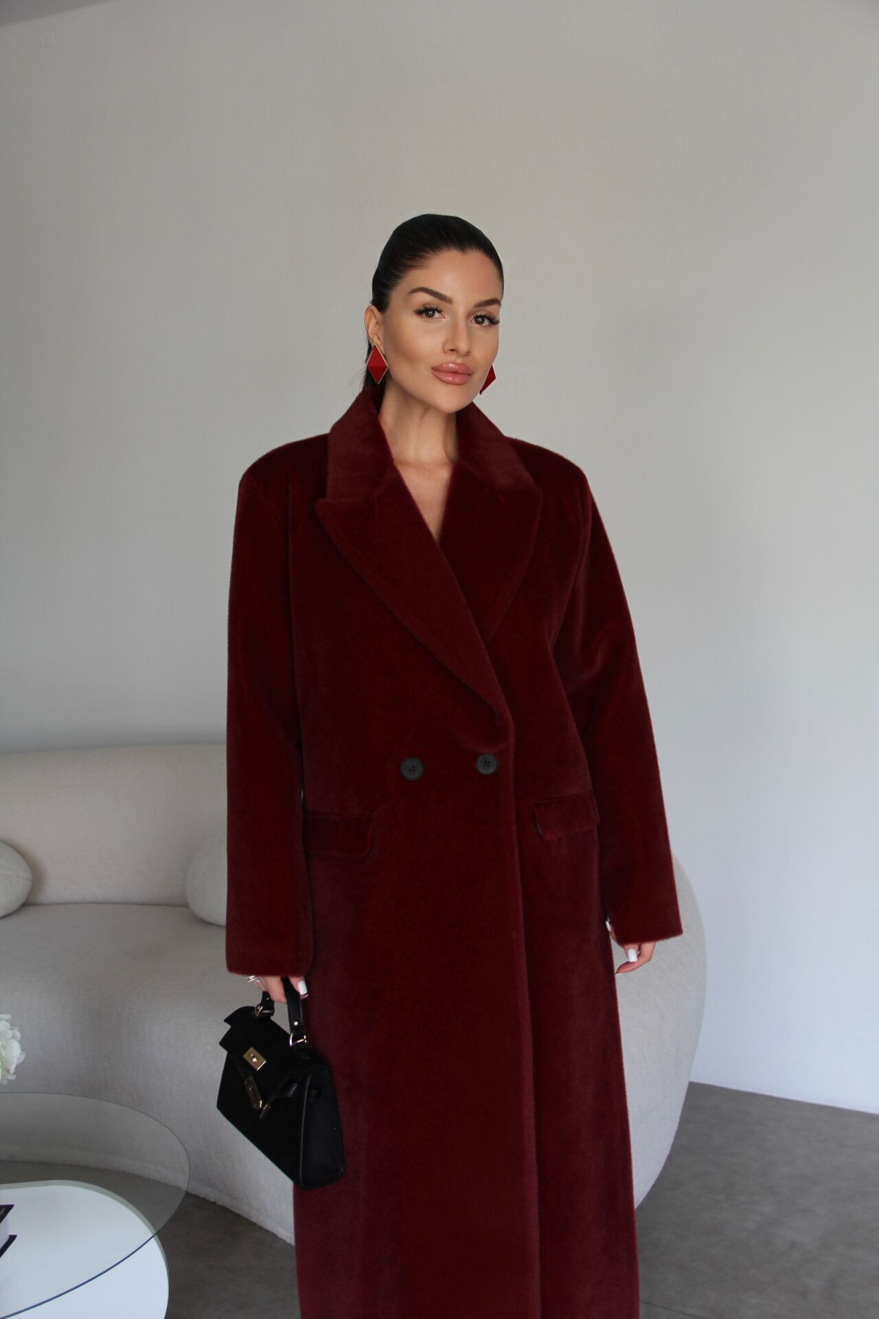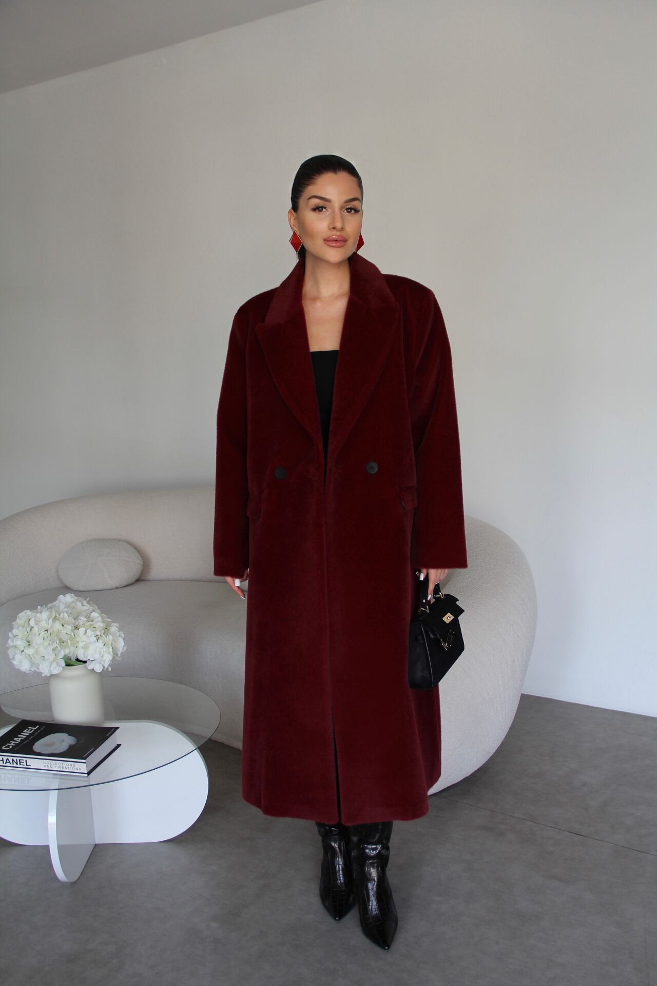 Bordo Özel Dokulu(Tay Tüyü) Astarlı Premium Uzun Kaban