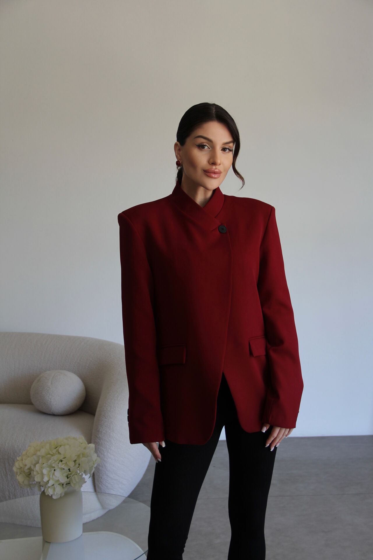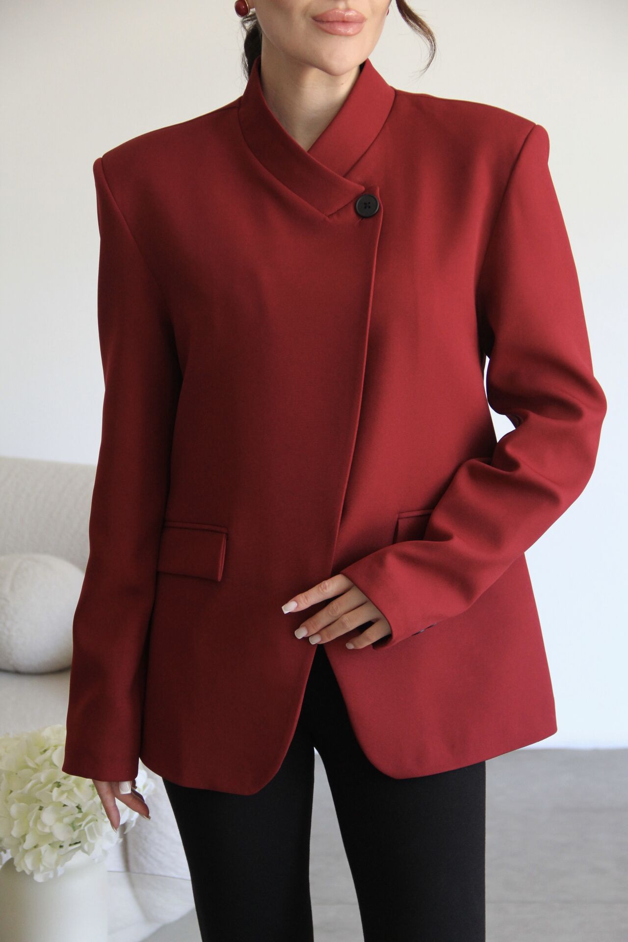 Bordo Tek Düğme Detaylı Hakim Yaka Premium Tasarım Blazer Ceket