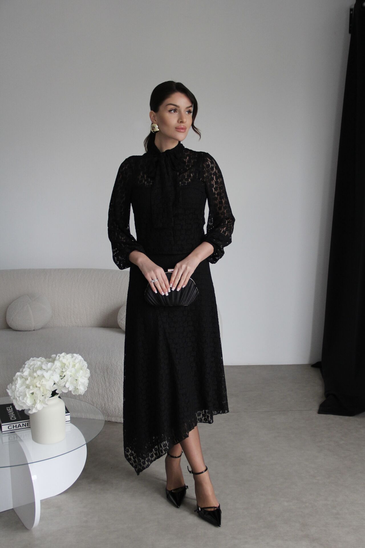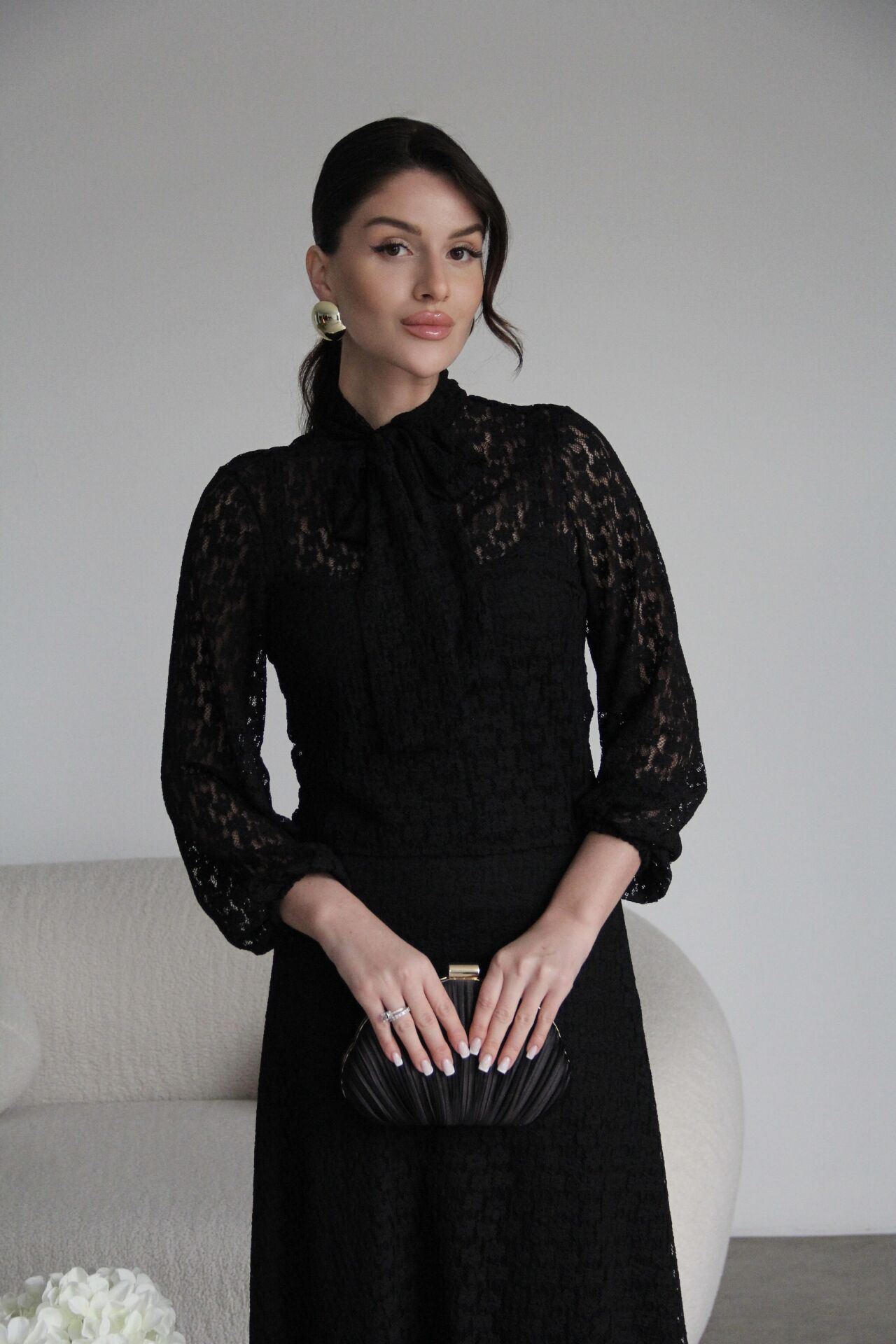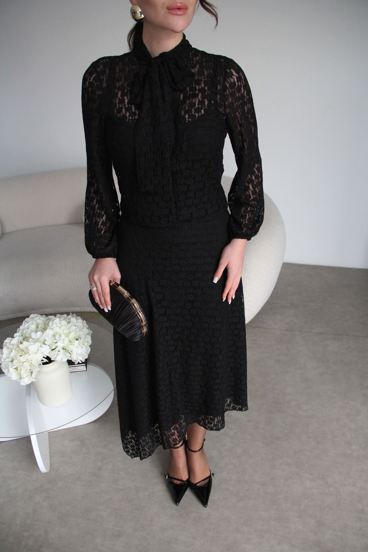Boyundan Bağlamalı Bluz ve Maxi Uzun Etek Alt Üst Premium Dantel Takım.