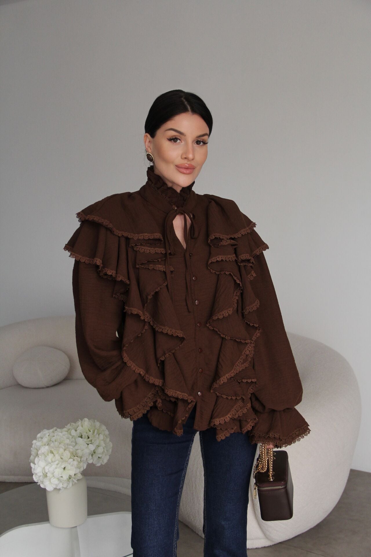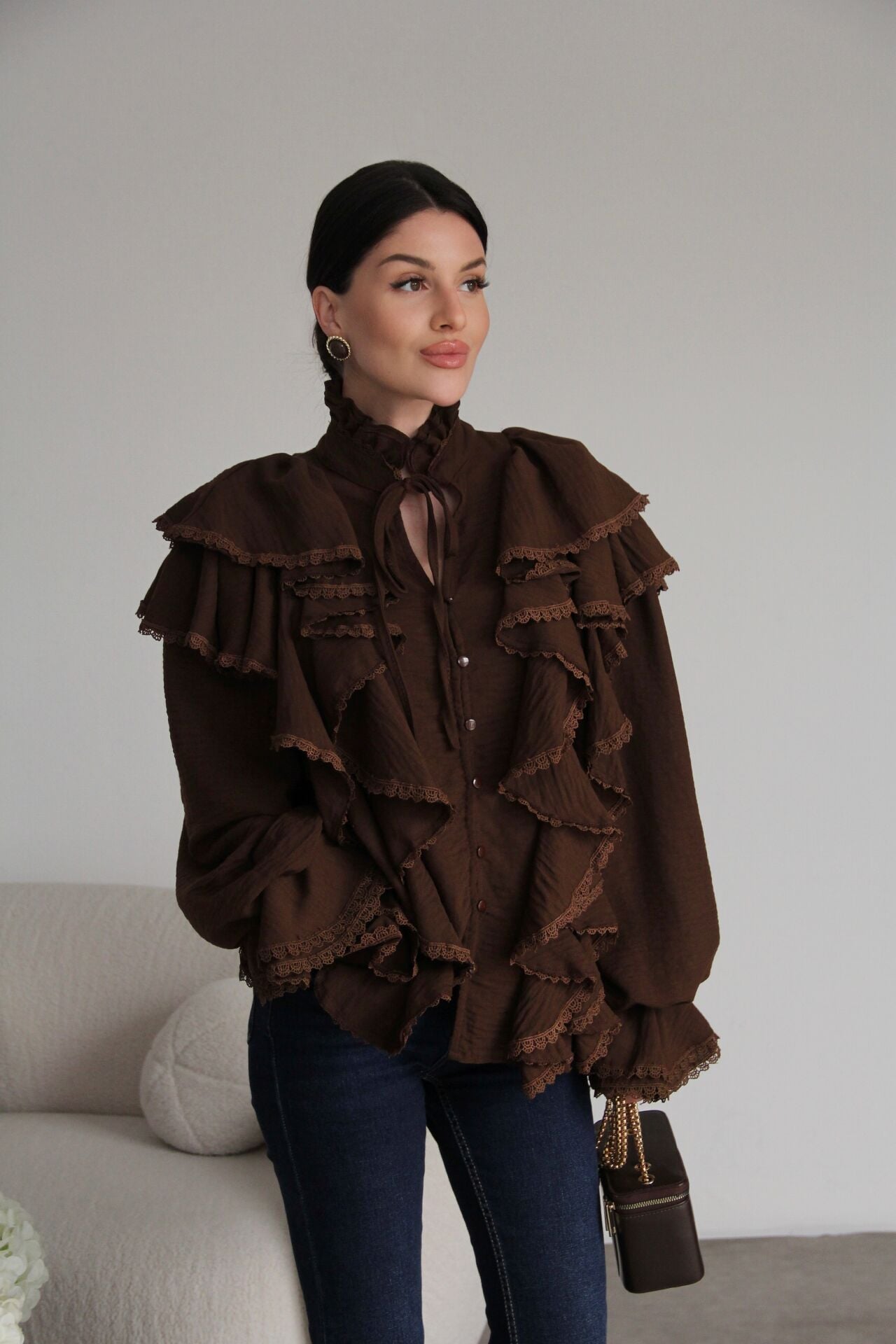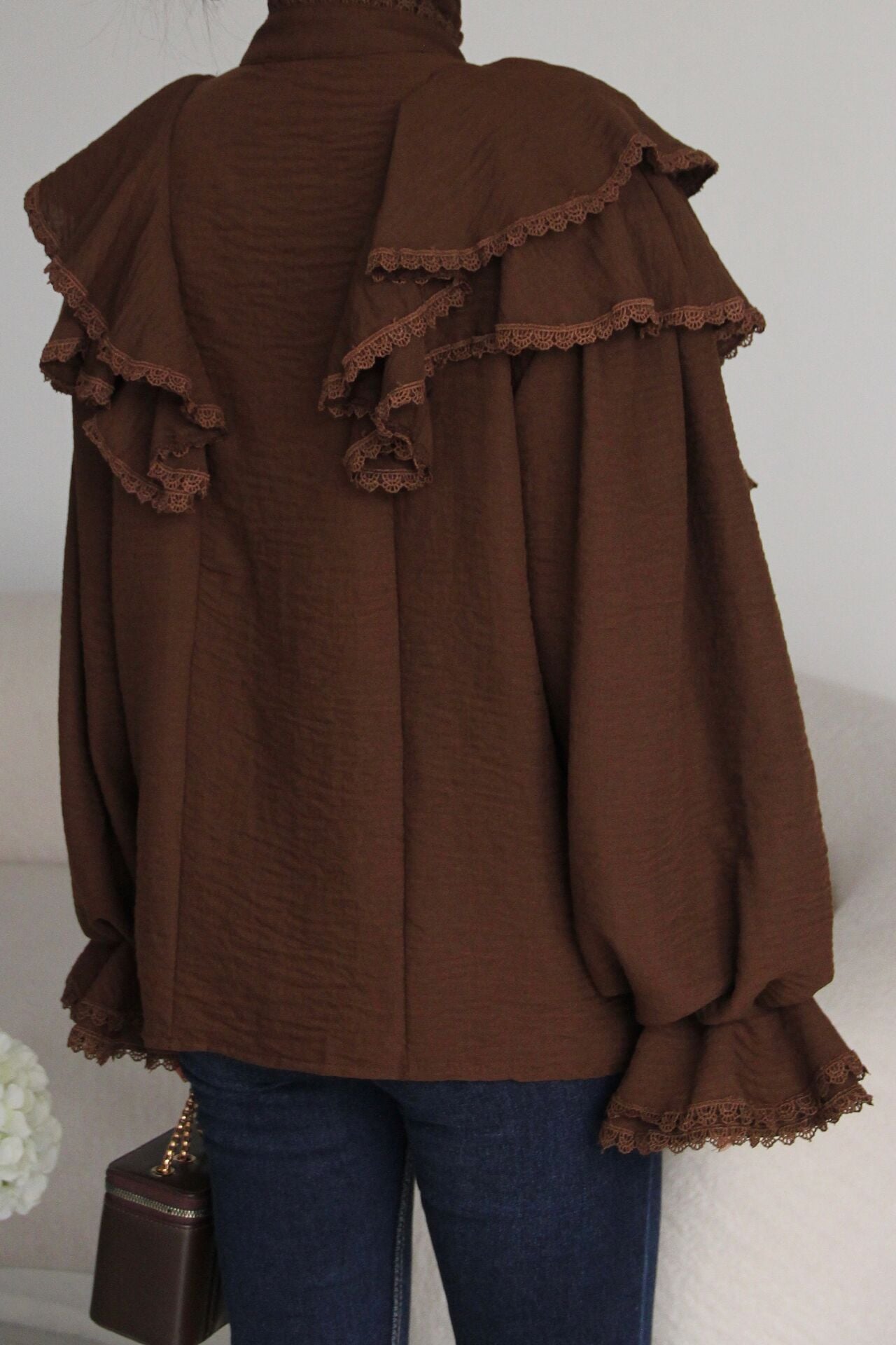 Dantel ve Bağlama Detaylı Premium Vintage Gömlek