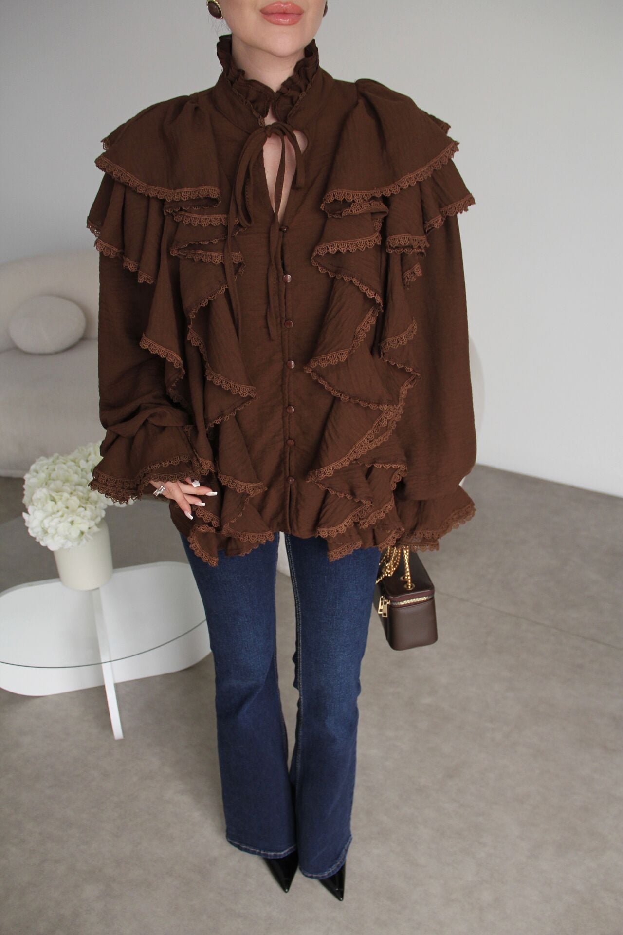 - - - Ürün boyu:72cm.; Kol boyu70cm; Dantel ve Bağlama Detaylı Premium Vintage Keten Dokulu Gömlek.; Model Boyu: 170cm.; Kilo:49. Zarif dantel detayları ile göz alıcı bir görünüm sunar.; 30 derecede, tersten yıkayınız.; Kumaş türü: %100 Polyester.; - Bağlama detayları sayesinde kişisel zevkinize göre ayarlama imkanı sağlar.; - Yüksek kaliteli polyester materyali ile uzun ömürlü kullanım vaat eder.; - Her türlü mevsimde rahatlıkla tercih edebileceğiniz bir tasarıma sahiptir.; - Farklı ortamlarda şıklığınızı tamamlayacak ideal bir parçadır.; - Özel günlerinizde veya günlük kullanımda stilinizi ön plana çıkarır.;.; Zarif dantel ve bağlama detaylarıyla süslenmiş, vintage esintili bir tasarım sunar.; - Uzun kollu ve gömlek yaka tasarımı ile hem şıklığı hem de rahatlığı bir arada sunar.; - Düz deseni ve beyaz rengiyle her türlü kombinle uyum sağlar, zamansız bir parça olarak gardırobunuzda yerini alır.; - Uzun boyu sayesinde modern ve sofistike bir görünüm kazandırır.; - Dokulu kumaşı, dokuma tipi ile öne çıkarak kaliteli bir dokunuş sunar.; - Tüylenmez özelliği ile uzun süreli kullanım için idealdir.; - Oversize kalıbı, rahat bir kullanım sağlarken şık bir siluet oluşturur.; - Düğmeli kapama şekli pratiklik ve stil sahibi bir görünüm sunar.; - %100 polyester materyal bileşeni, dayanıklılığı ve kolay bakım imkanı sağlar.; - 30 derecede yıkanabilir olması, ürünün uzun ömürlü olmasını kolaylaştırır.; - Tüm sezonlar için uygun tasarımı ile yılın her döneminde tercih edilebilir.; - Smart/Office persona'sına uygun olarak ofis ortamında da rahatlıkla kullanılabilir.; - Casual/Günlük ortamlar için ideal olan bu gömlek, günlük şıklığınızı tamamlar.; - Baskısız yapısıyla sade ve zarif bir görünüm sunar.; - Kemersiz tasarımı, farklı aksesuarlarla kişiselleştirme imkanı tanır.;