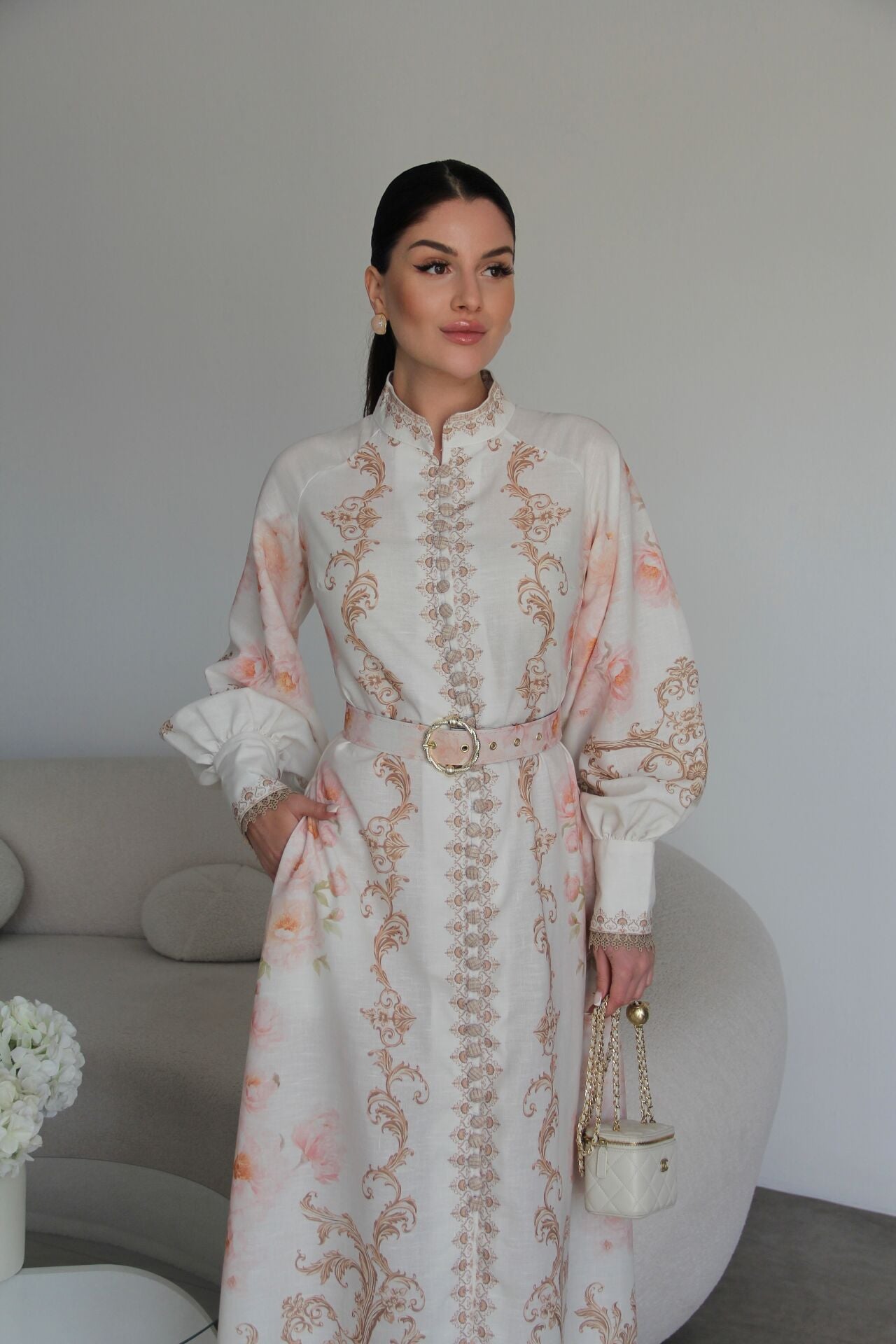 - Yüksek Kalite, Yeni Sezon, Dik Yaka Çok Renkli Düğmeli KEMERLİ Premium Tasarım Keten Elbise ; Kumaş Türü :%70 Pamuk %12 Polyester %18 Likra - Esnek Değildir.; Dar kesimdir, kendi bedeninizden bir beden büyük tercih edebilirsiniz ; Elbisemizin uzunluğu:136cm(Ortalama) ; Rahat ve yumuşak yapısı ilk bahar, ve yaz aylarında kullanabileceğiniz oldukça şık yüksek kalite elbise ; Mankenin üzerindeki ürün “S” bedendir.; Model Boy: 170cm.; Kilo: 50. ; Stüdyodaki ışık farklılığından dolayı renkler değişiklik gösterebilir ; ;.; Zarif gül deseniyle göz alıcı bir görünüm sunar.; - Dik yaka tasarımı ile modern ve şık bir siluet oluşturur.; - Düğmeli kapama şekli, pratik kullanım sağlar.; - Kemer detayı belinizi vurgulayarak feminen bir hava katar.; - Premium keten materyali sayesinde hem rahat hem de dayanıklıdır.; - Midi boy kesimi ile farklı ortamlara uyum sağlar.; - Tasarım detaylarıyla öne çıkan bu elbise, özel günlerinizde şıklığınızı tamamlar.;