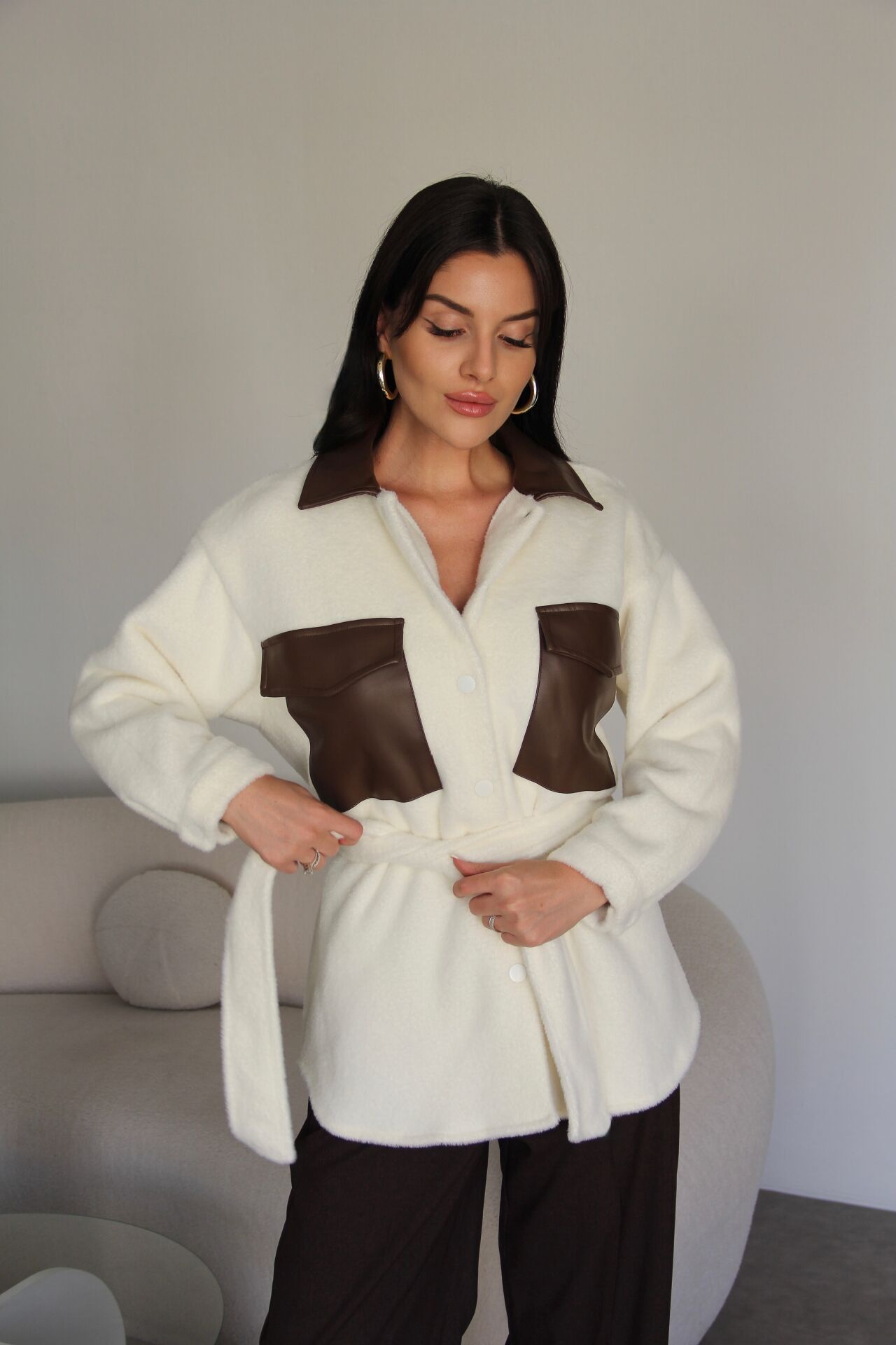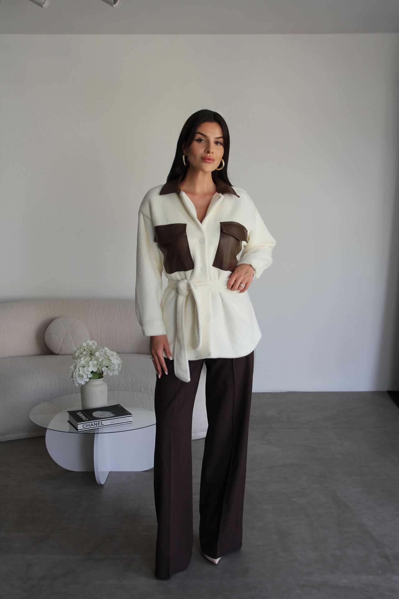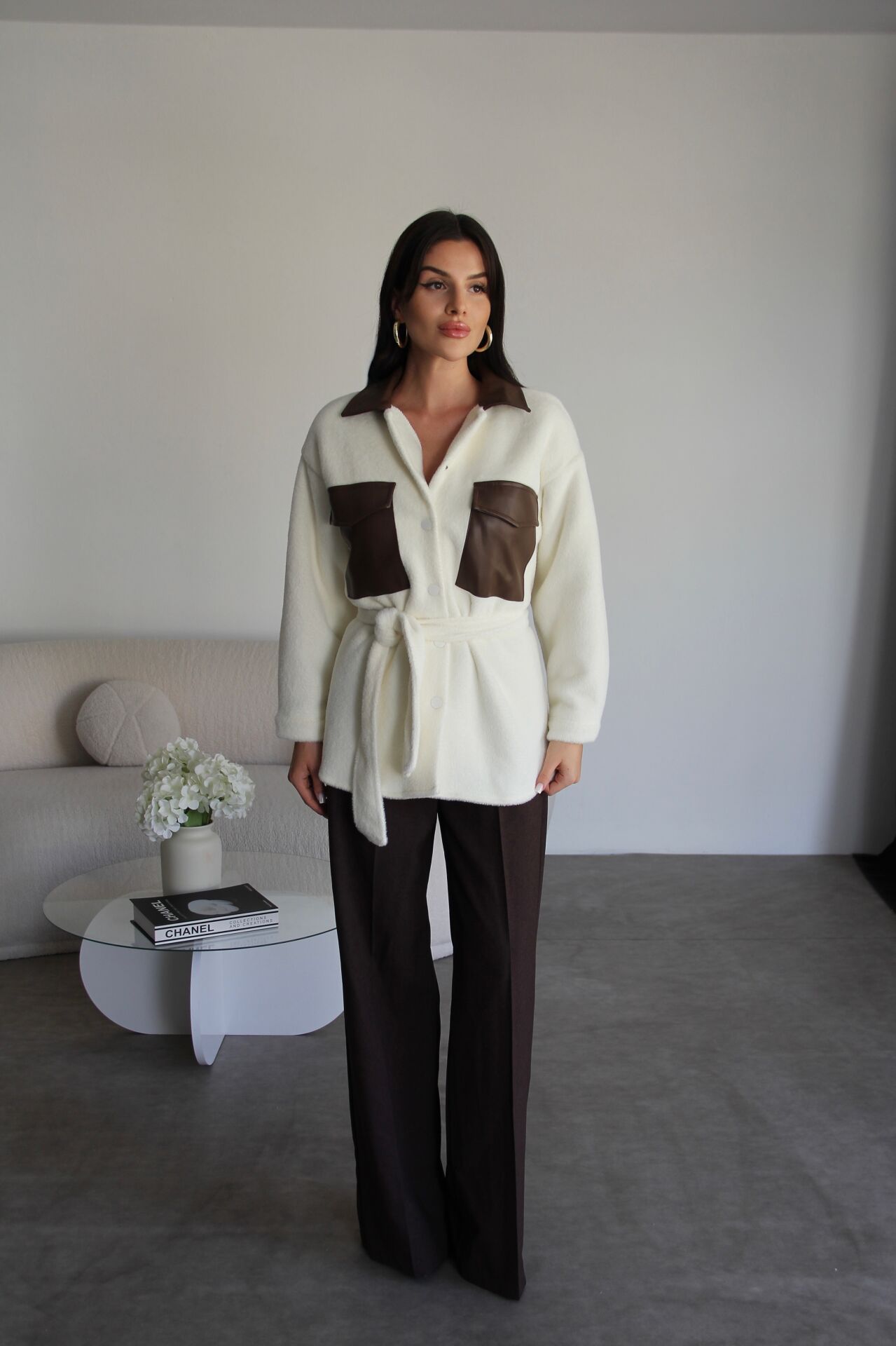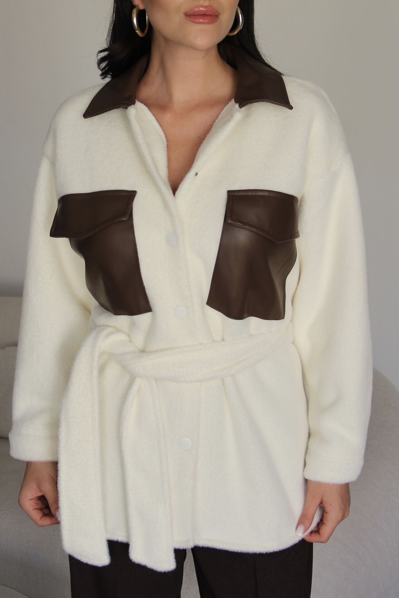 - JULİDRESS. Kahve Deri Garnili Çıtçıt Düğmeli KUŞAKLI ince Premium Ceket. Ürün boyu:70cm. %95 Polyester, %5 Elestan. Astarsız tasarımı ile hafif ve konforlu bir kullanım sunar. - Çıtçıt kapama özelliği sayesinde pratik ve şık bir görünüm sağlar. - Kuşak detayı ile belinizi vurgulayarak feminen bir siluet oluşturur. - Gömlek yaka tasarımı, klasik ve zamansız bir stil sunar. - Basic siluetiyle her türlü kombinle uyum sağlayarak gardırobunuzun vazgeçilmez parçası haline gelir.