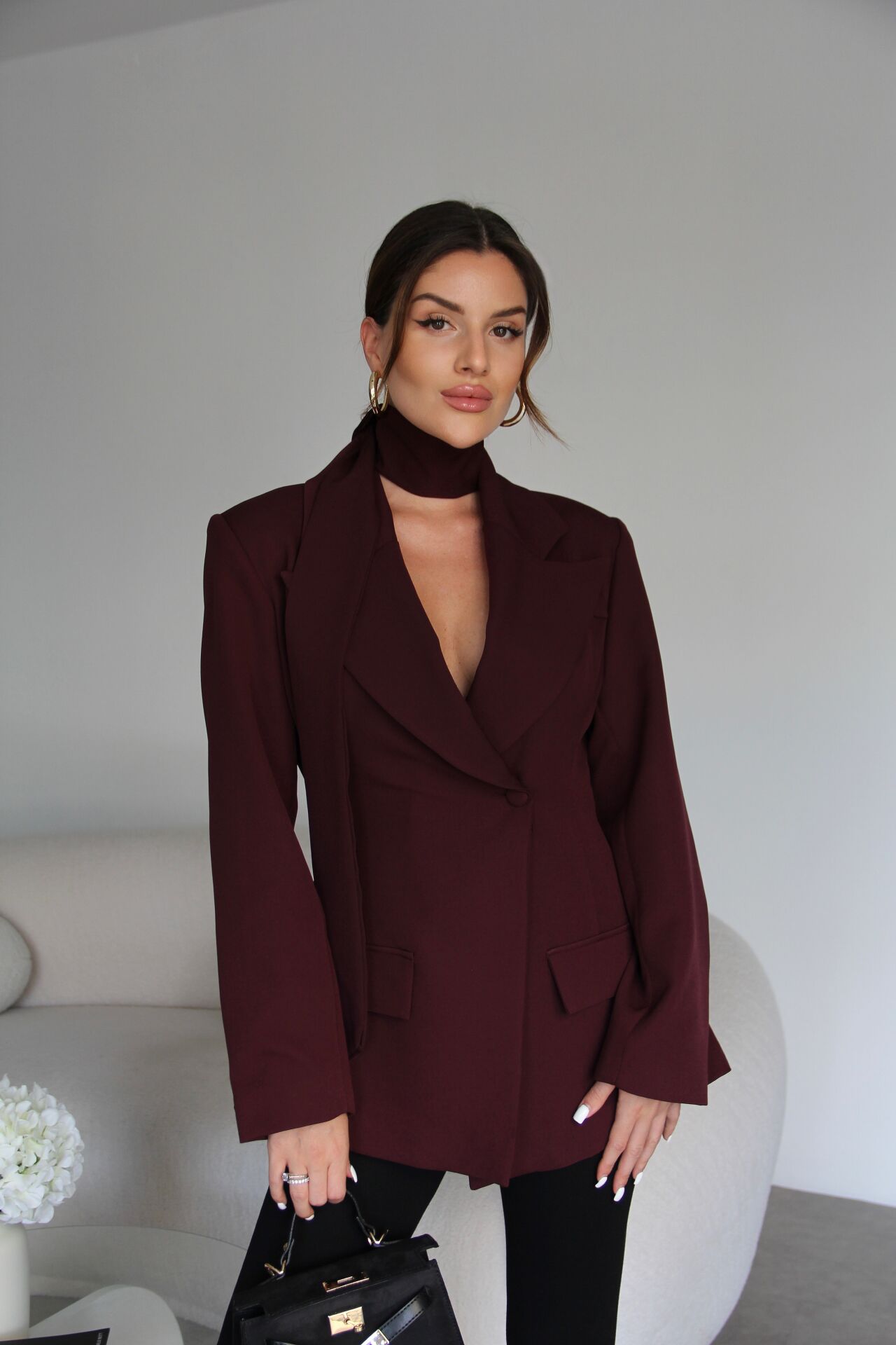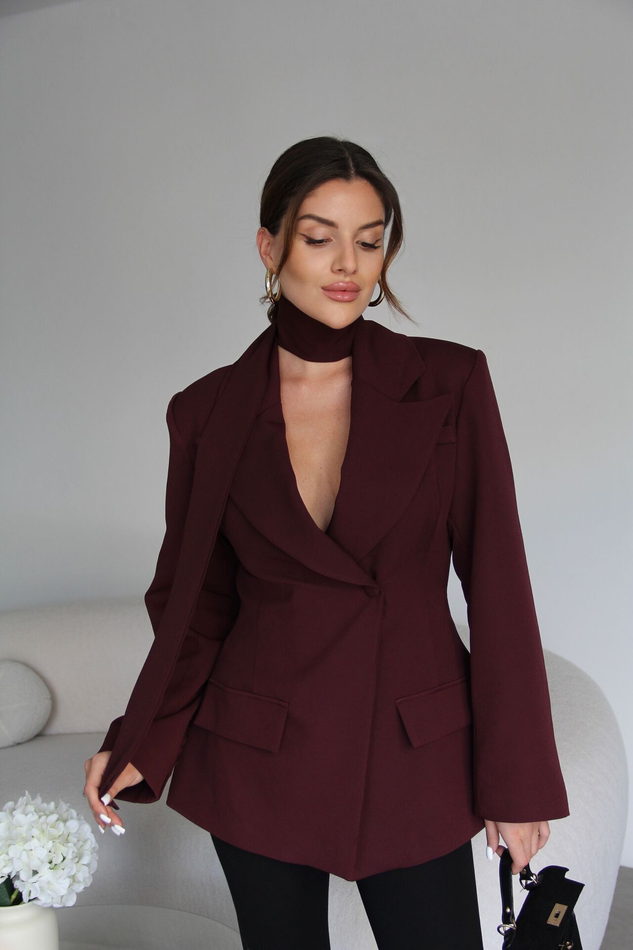 Mürdüm Bele Oturan Kuşak Detaylı Premium Tasarım Blazer Ceket (Ön Sipariş:17:11)