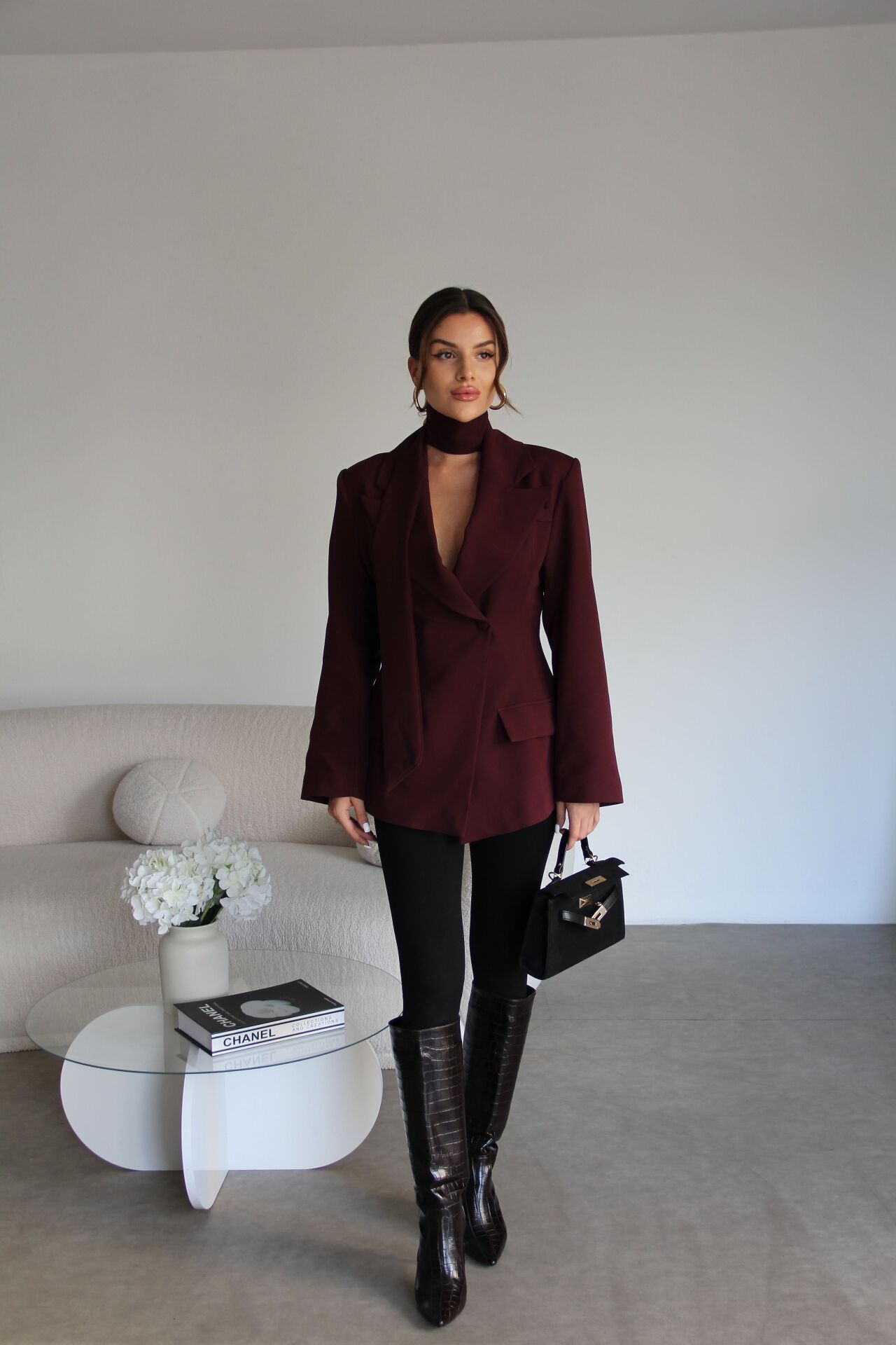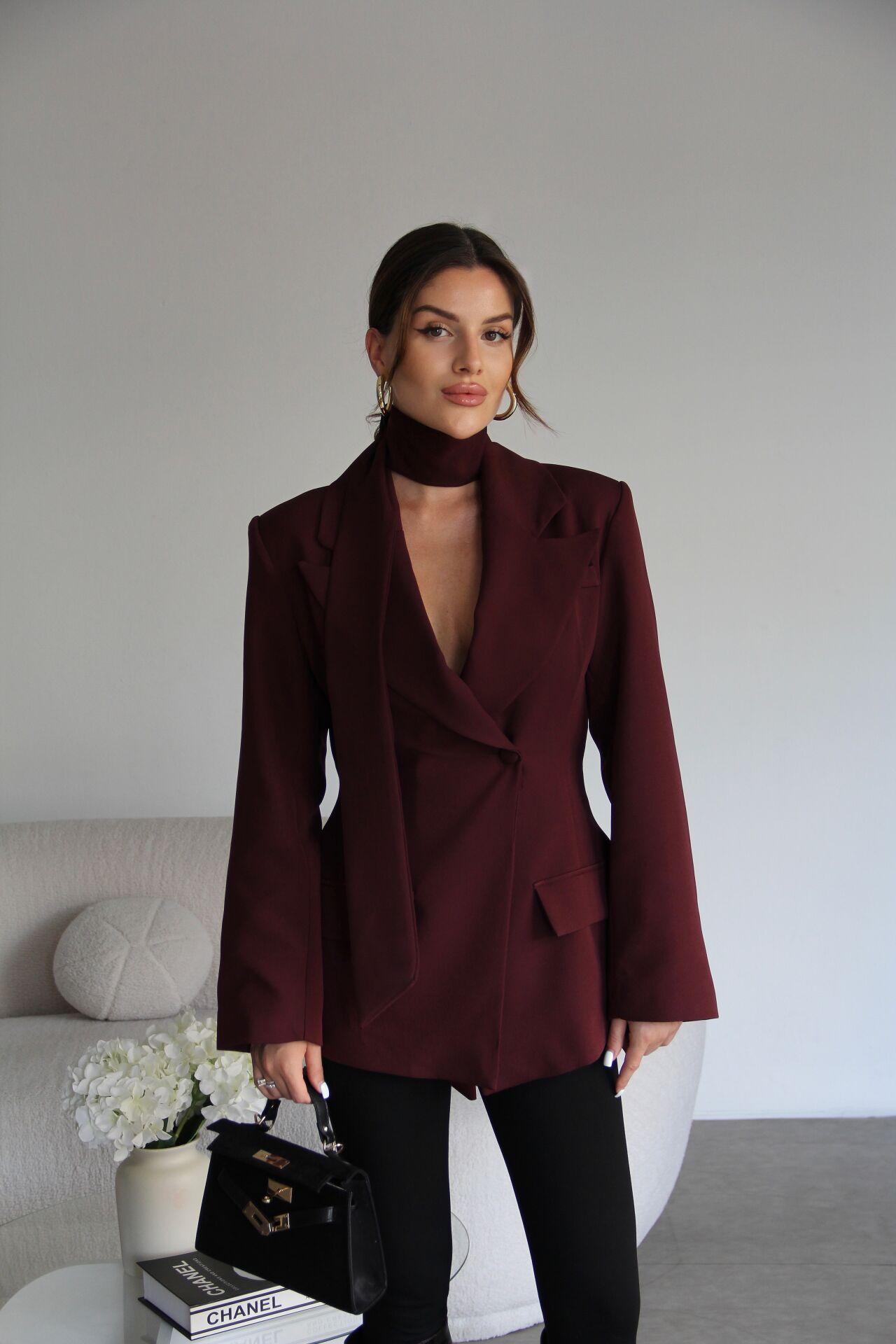 Mürdüm Bele Oturan Kuşak Detaylı Premium Tasarım Blazer Ceket