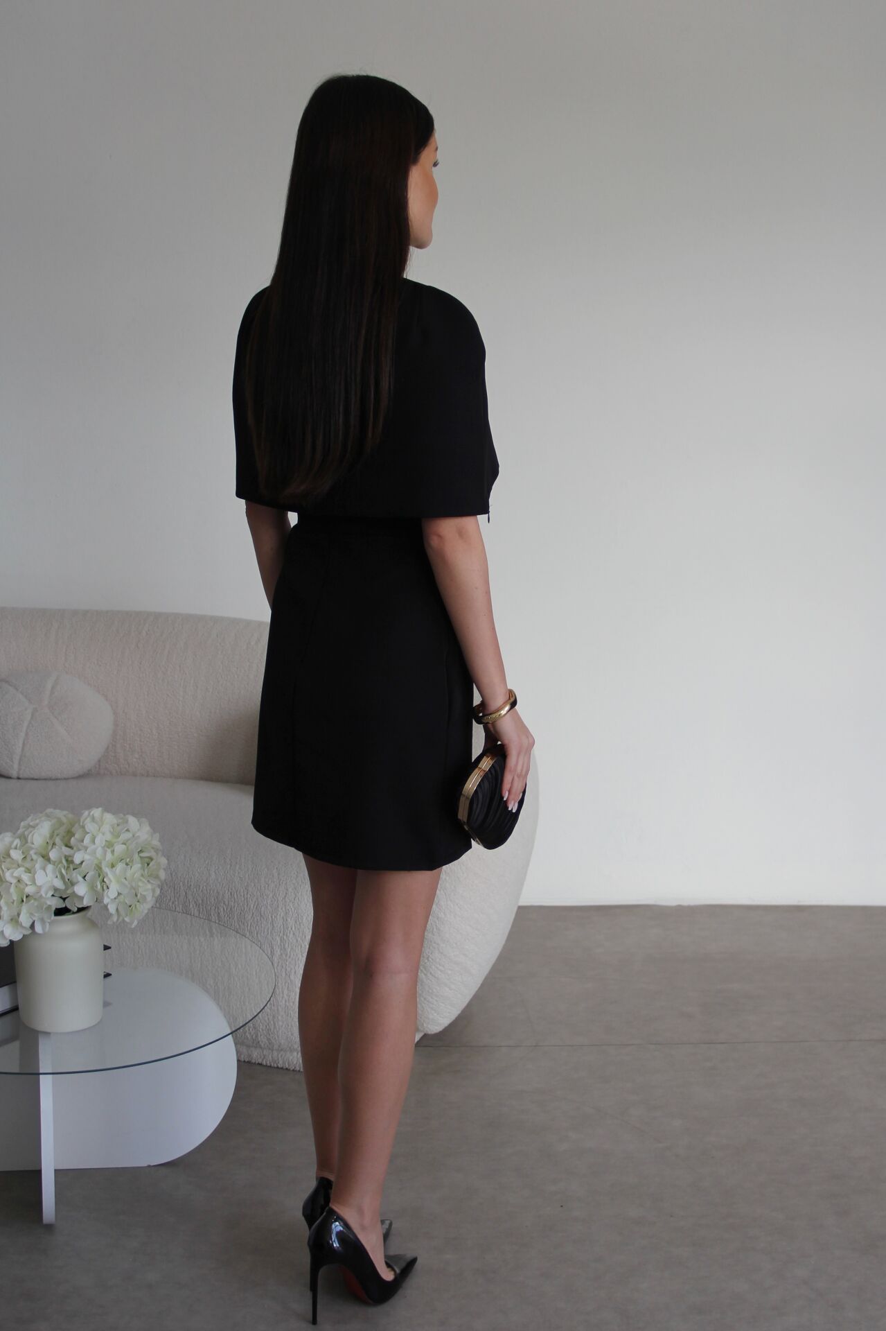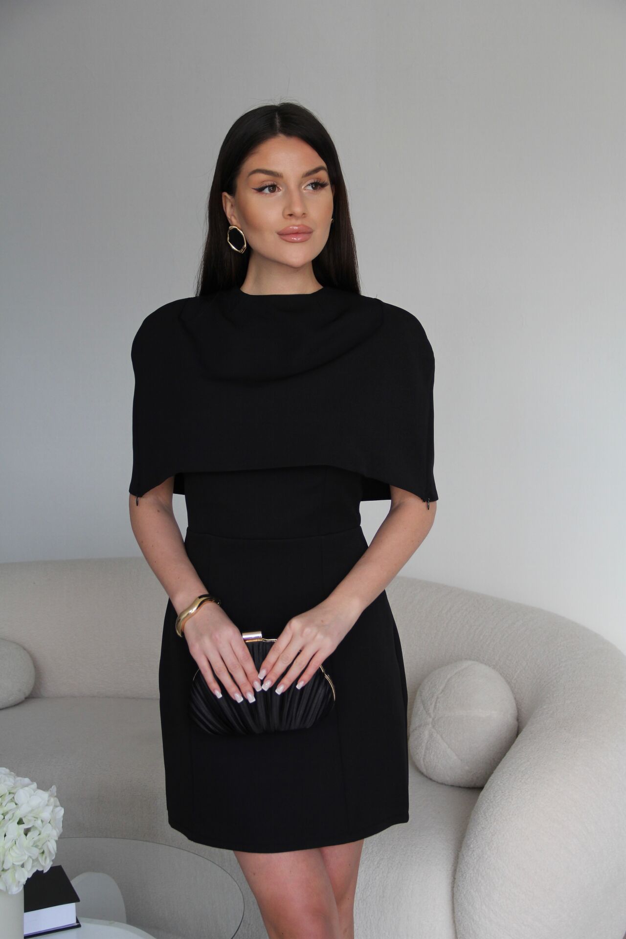 Pelerin Detaylı Tasarım Premium Mini Elbise.