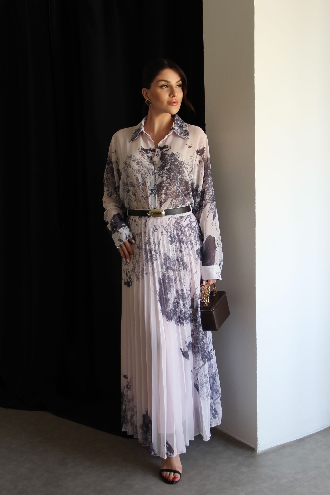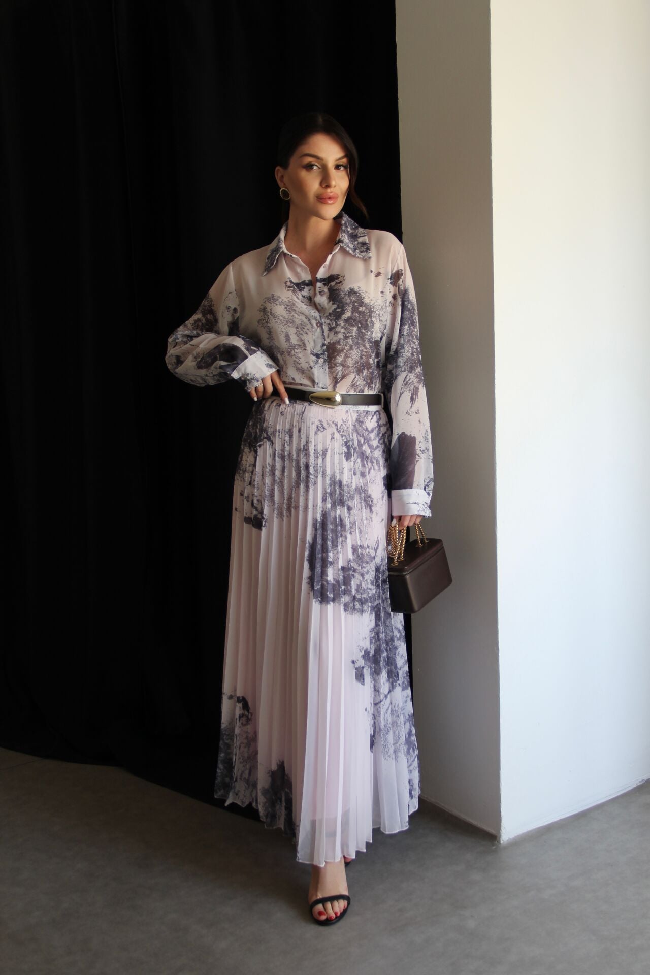 - Desenli Transparan Gömlek(Gömlek İç Gösteriri) ve KEMERLİ Piliseli Astarlı Maxi Uzun Etek(İç Göstermez) Premium Şifon Takım. Ürün Boyu: Gömlek: 64cm. Piliseli astarlı Etek: 100cm. Kumaş Bilgisi:%100 Polyester. Şık ve modern tasarımıyla dikkat çeken desenli gömlek ve piliseli astarlı maxi uzun etek takım. - Premium şifon kumaştan üretilmiş olup, hafif ve zarif bir kullanım sunar. - Uzun kollu gömlek tasarımı ile hem şıklığı hem de rahatlığı bir arada yaşatır. - 3'lü paket içeriği sayesinde kombin seçeneklerinizi artırır. - Kemerli bel tasarımı ile vücut hatlarınıza mükemmel uyum sağlar ve feminen bir görünüm kazandırır. - Yarım pat fermuar kapama şekli ile kolay giyilip çıkarılabilir ve pratik kullanım sunar. - Dijital baskı tekniğiyle üretilen desenler, canlı renkler ve detaylarla göz alıcı bir görünüm oluşturur. - Piliseli detaylar eteğe hareket katarken, geniş paça tasarımı modern bir siluet sunar.
