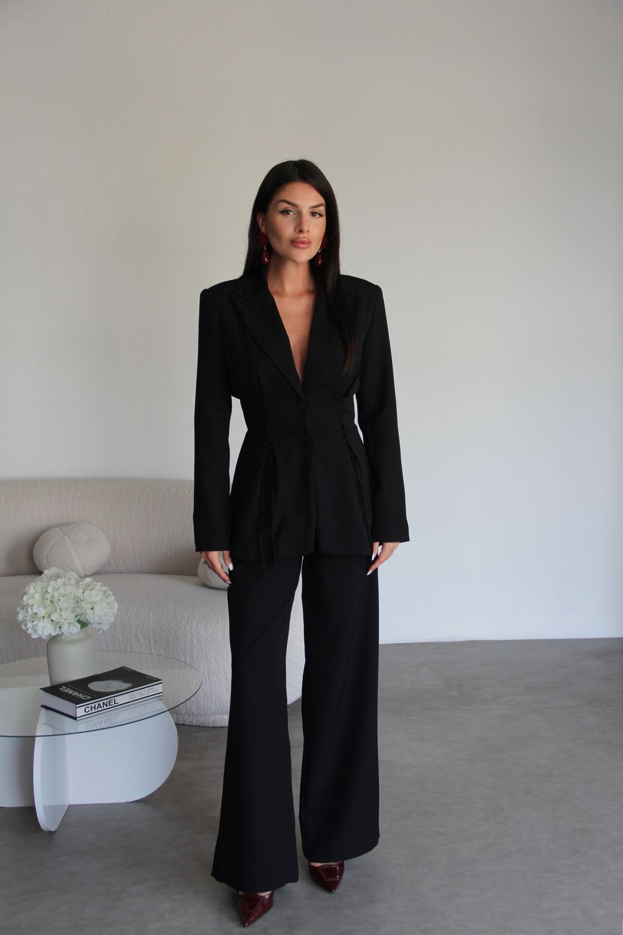 Siyah Bel ve Sırt Korse Görünümlü Ceket ve Pantolon Alt Üst Takım