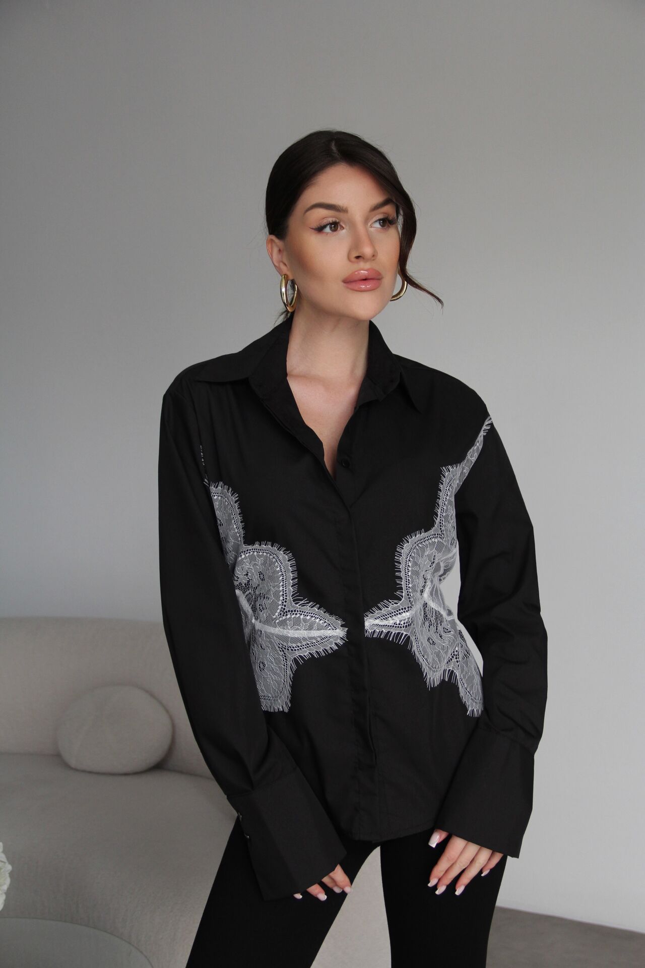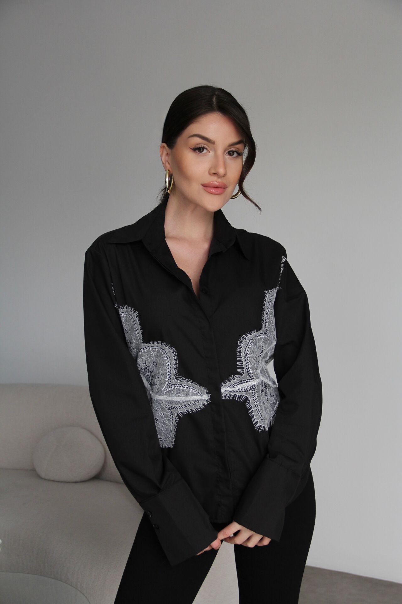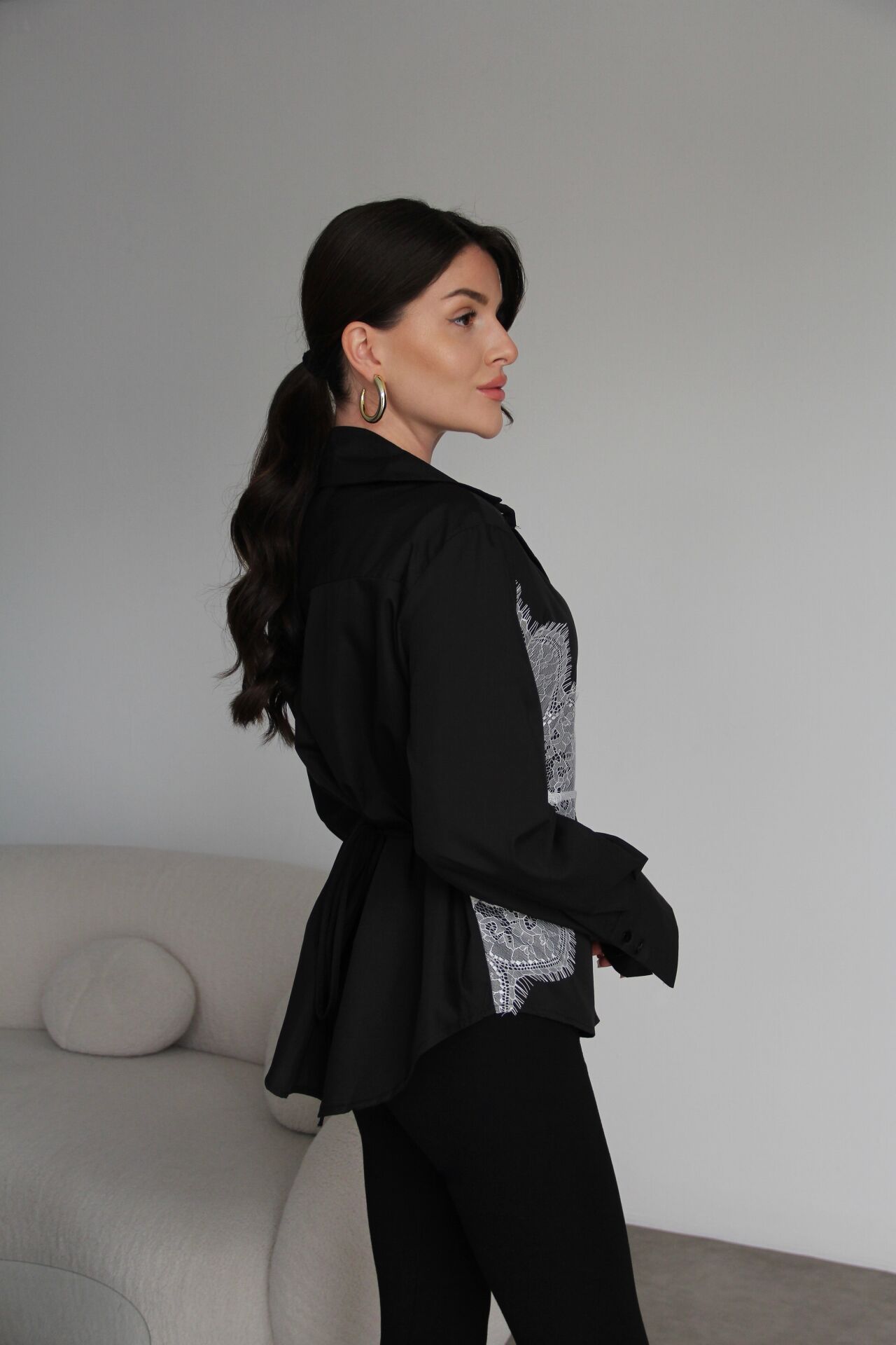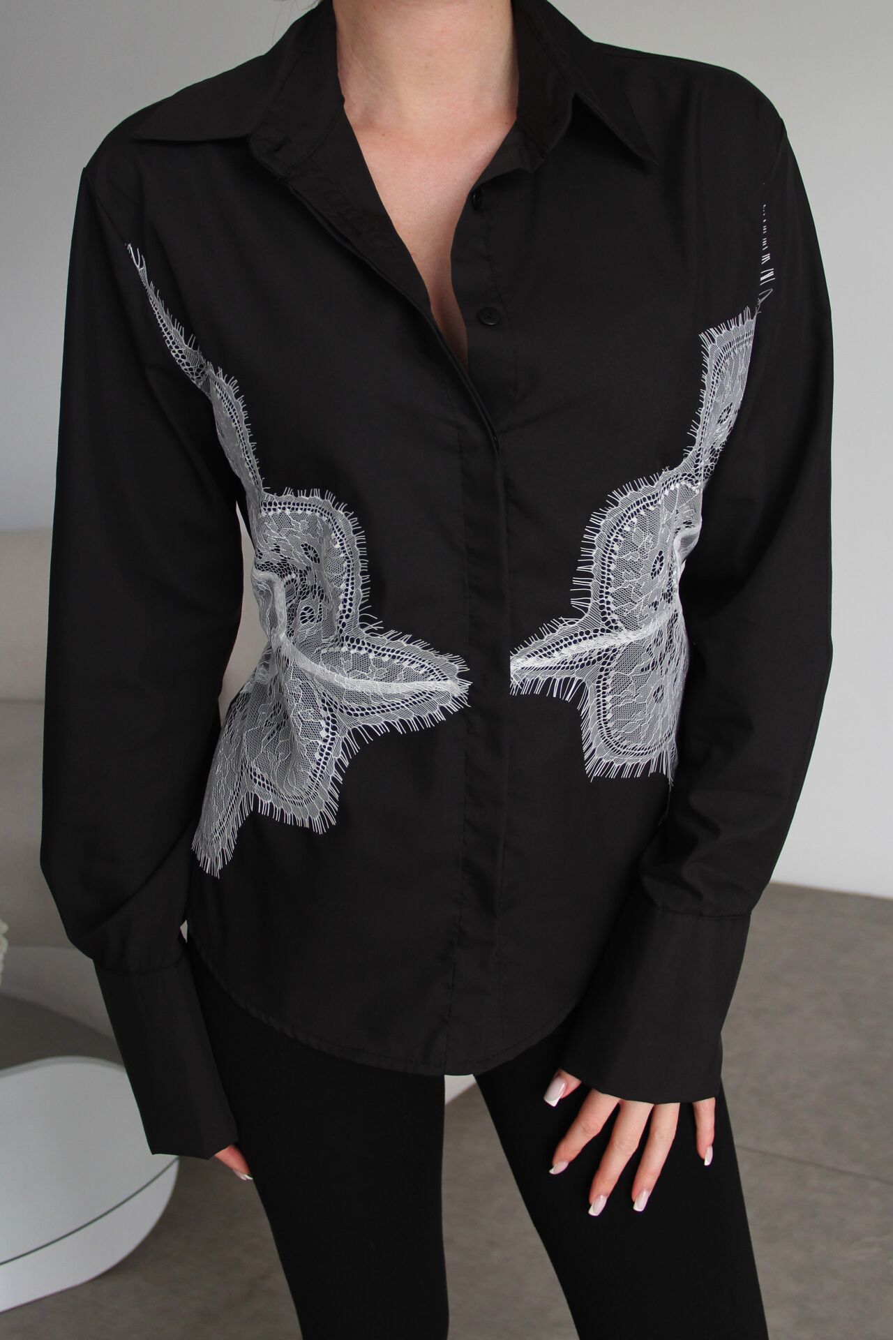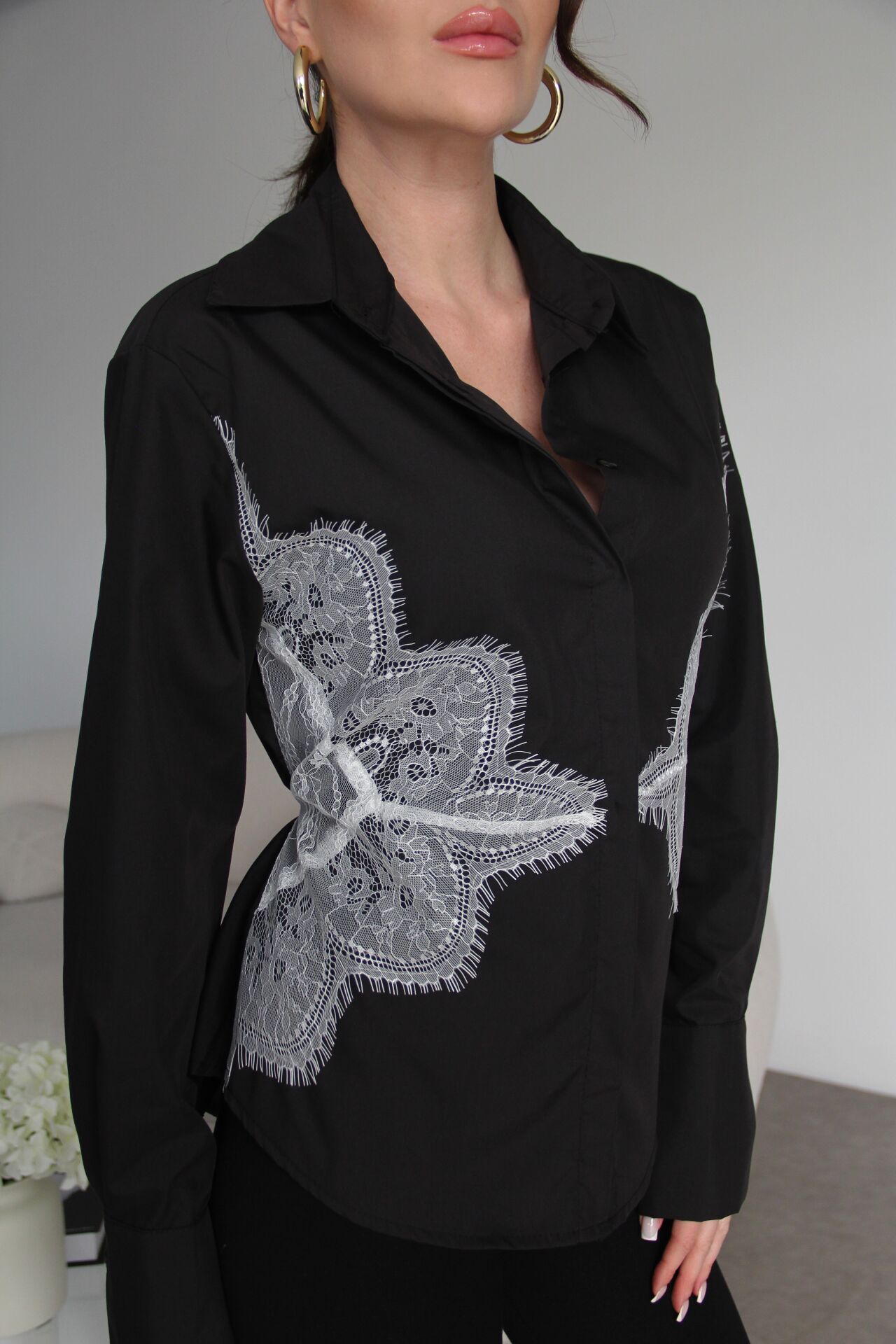 Siyah Dantel Detaylı Sırttan Bağlamalı Premium Gömlek