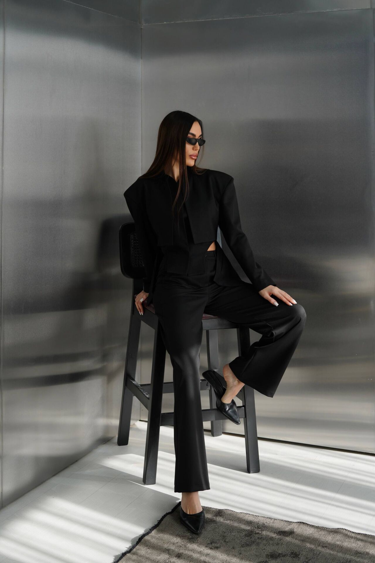 Siyah Vatkalı Astarlı Ceket ve Pantolon Alt Üst Tasarım Premium Takım