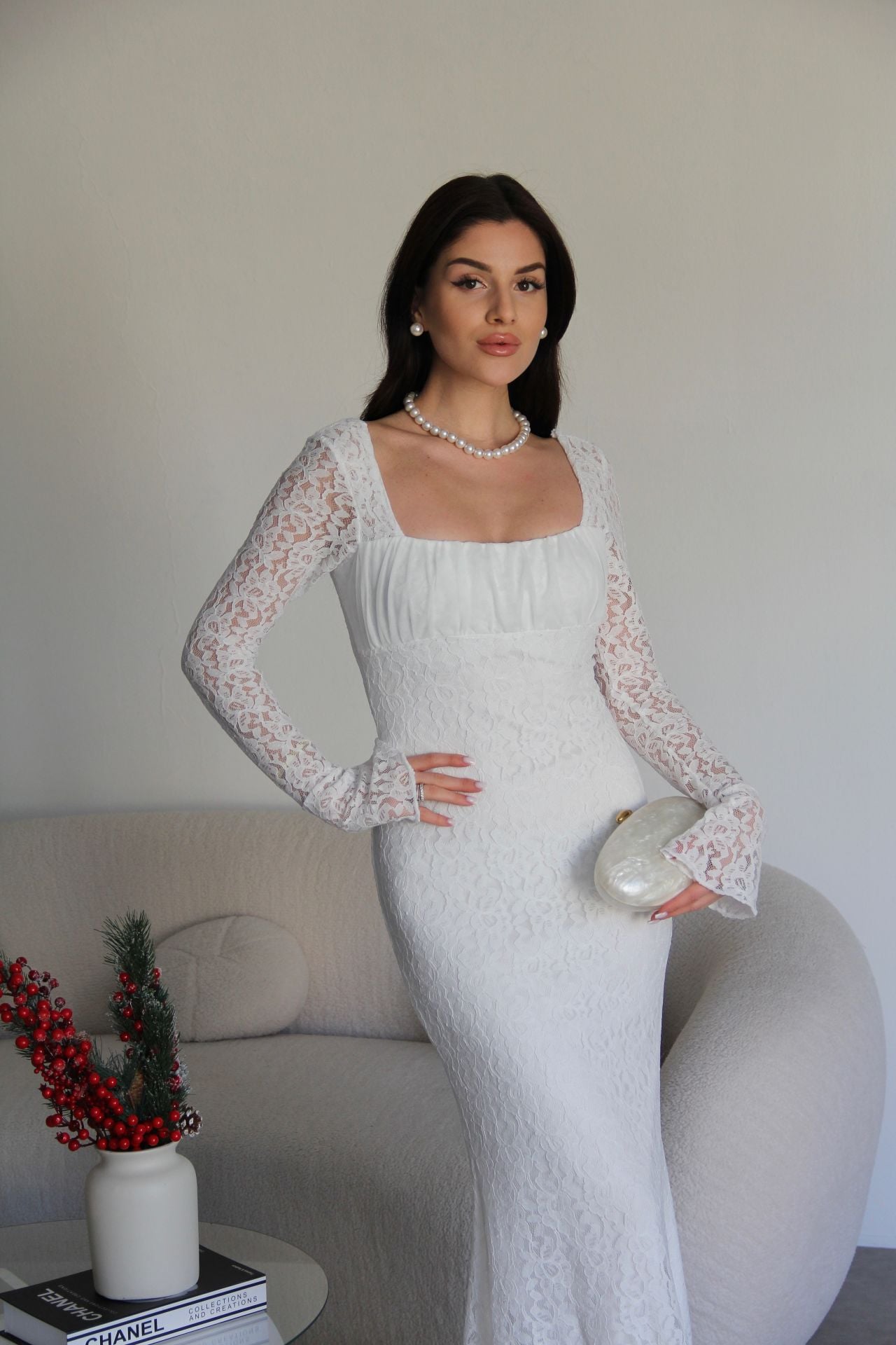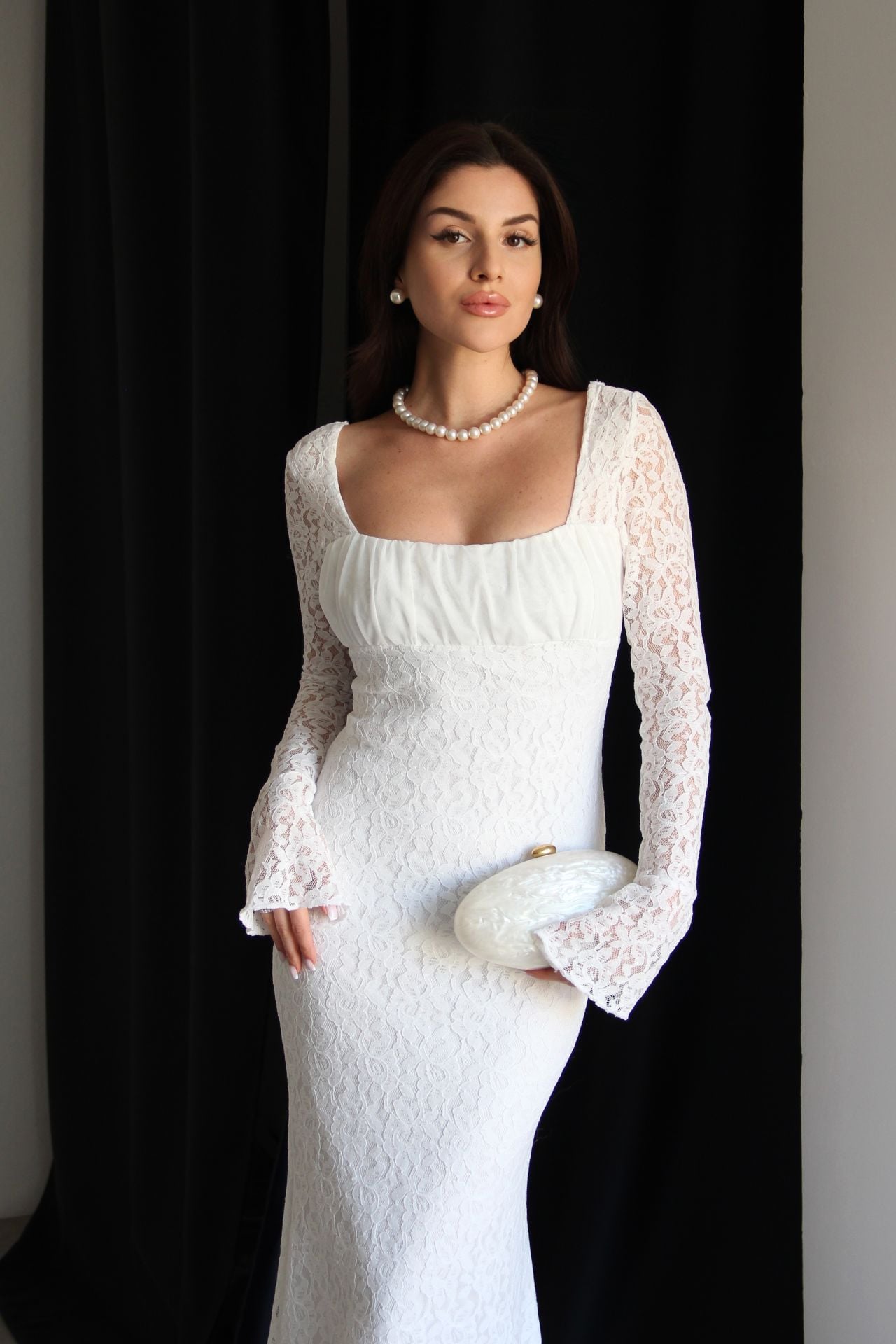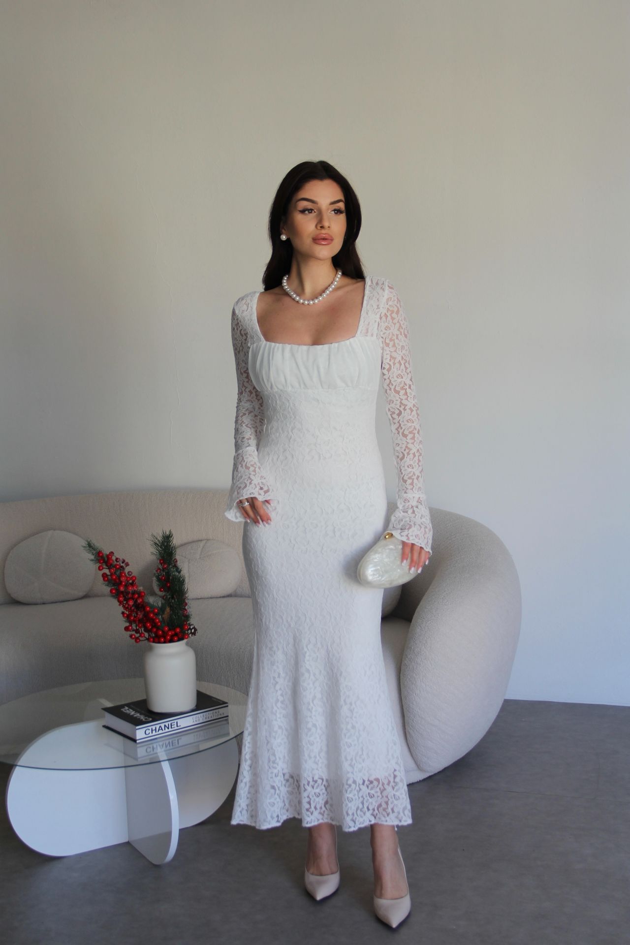 - Julidress- Yüksek Kalite, Yeni Sezon Transparan Yaka Astarlı Maxi Uzun Boy Premium Tasarım Dantel Elbise