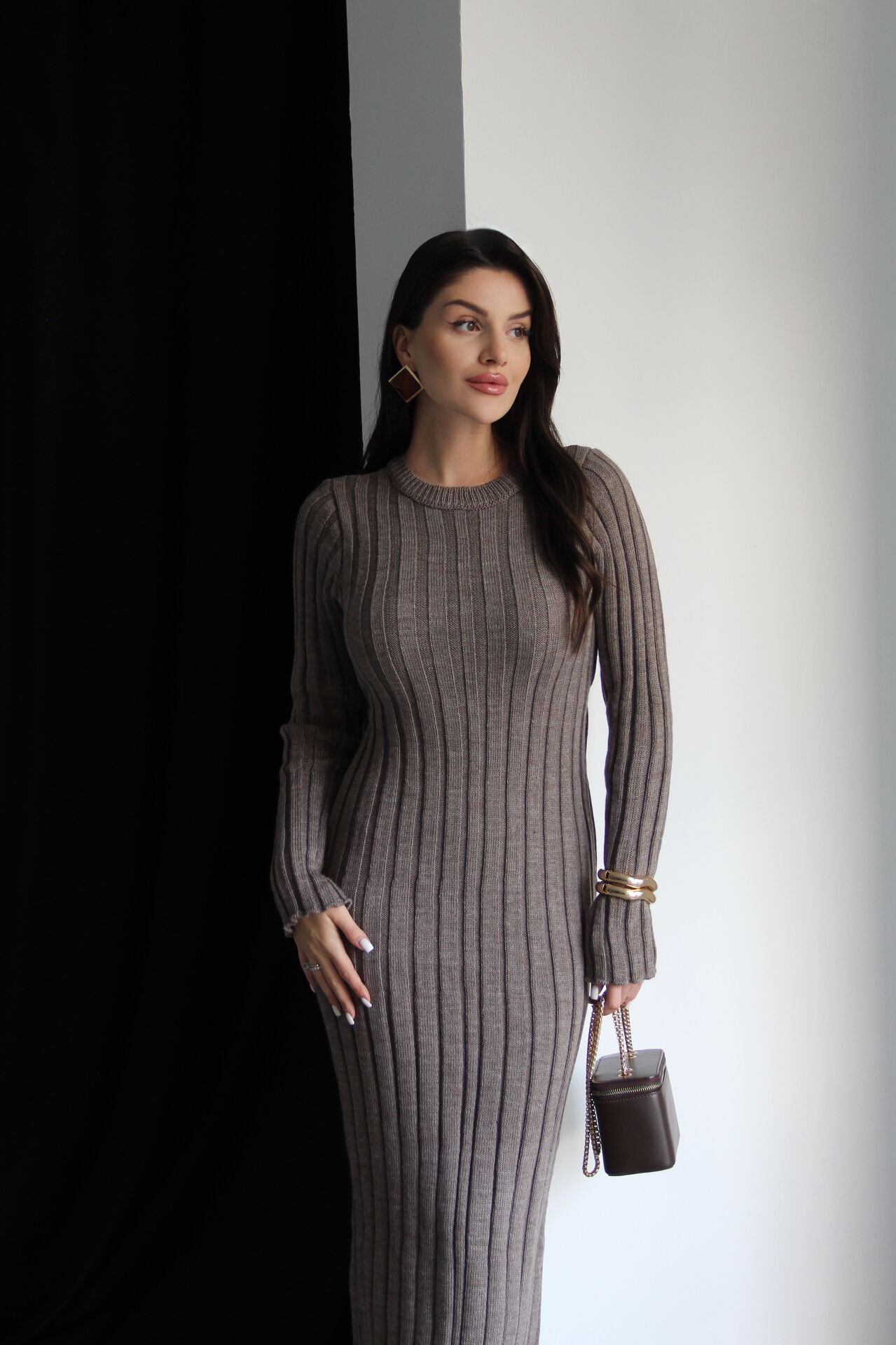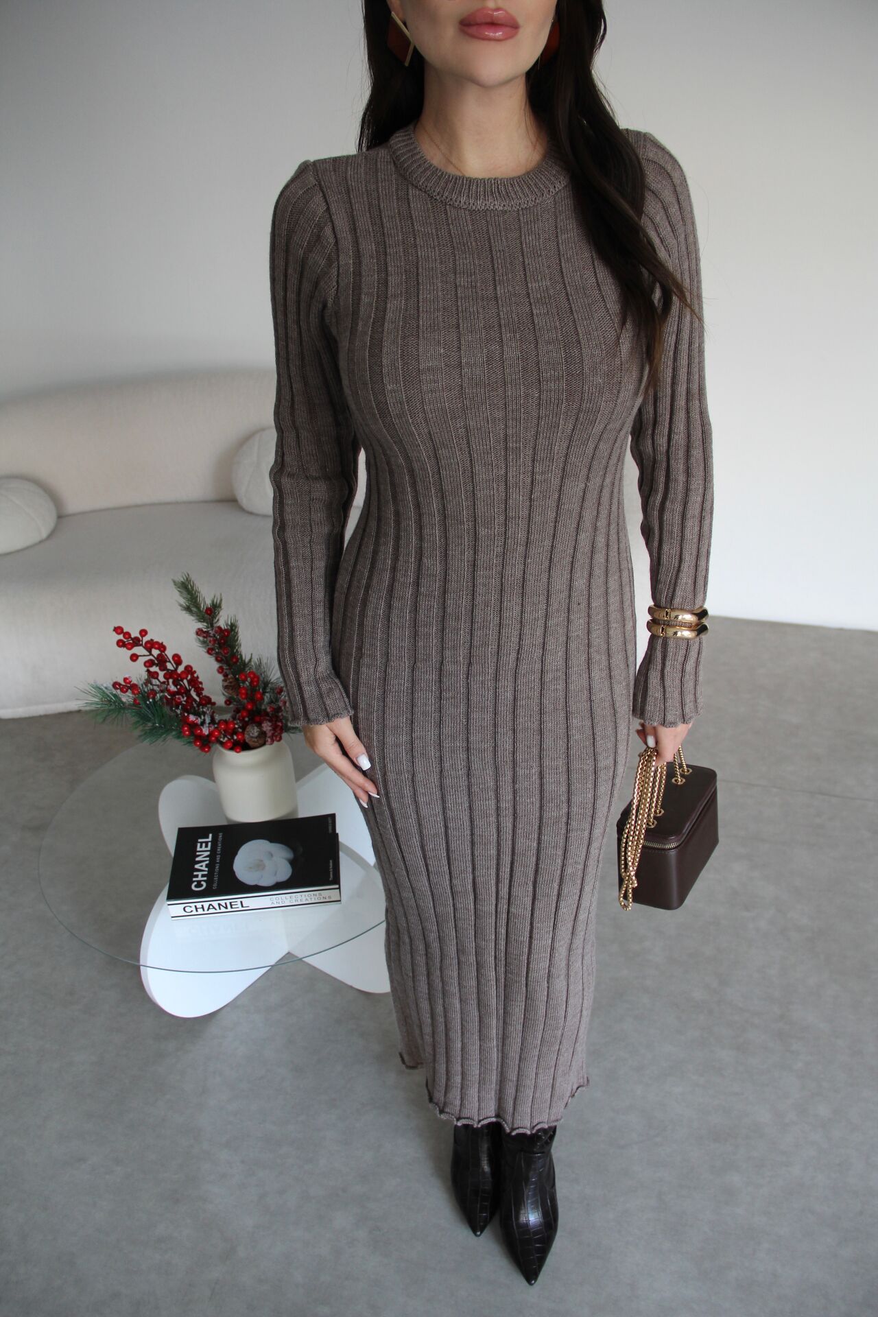 Vizon Bisiklet Yaka Maxi Uzun Boy Triko Elbise