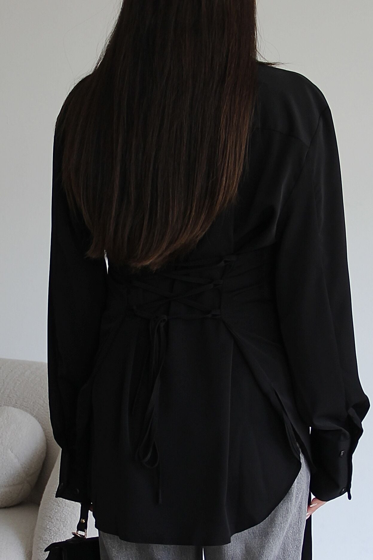 Yaka ve Sırttan Bağlama Detaylı Premium Siyah Gömlek